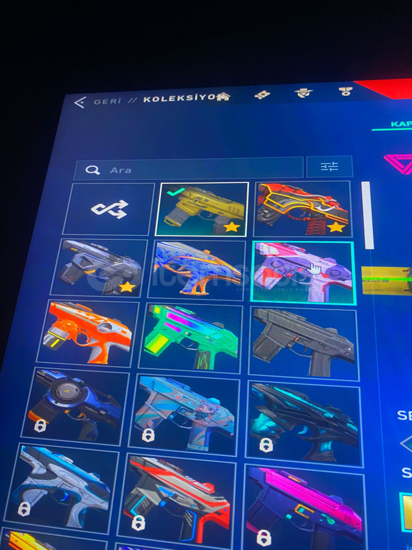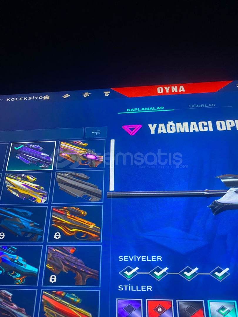 Hesap full + fulldur gırtlak dolusu yüksek mmr full immo steck 500 rr peak vardır 13 vandal skini3 phantom3 sherif2 ghot 1 guardian 1 classic5 adet battle pass4 adet bıçak 1 operatör