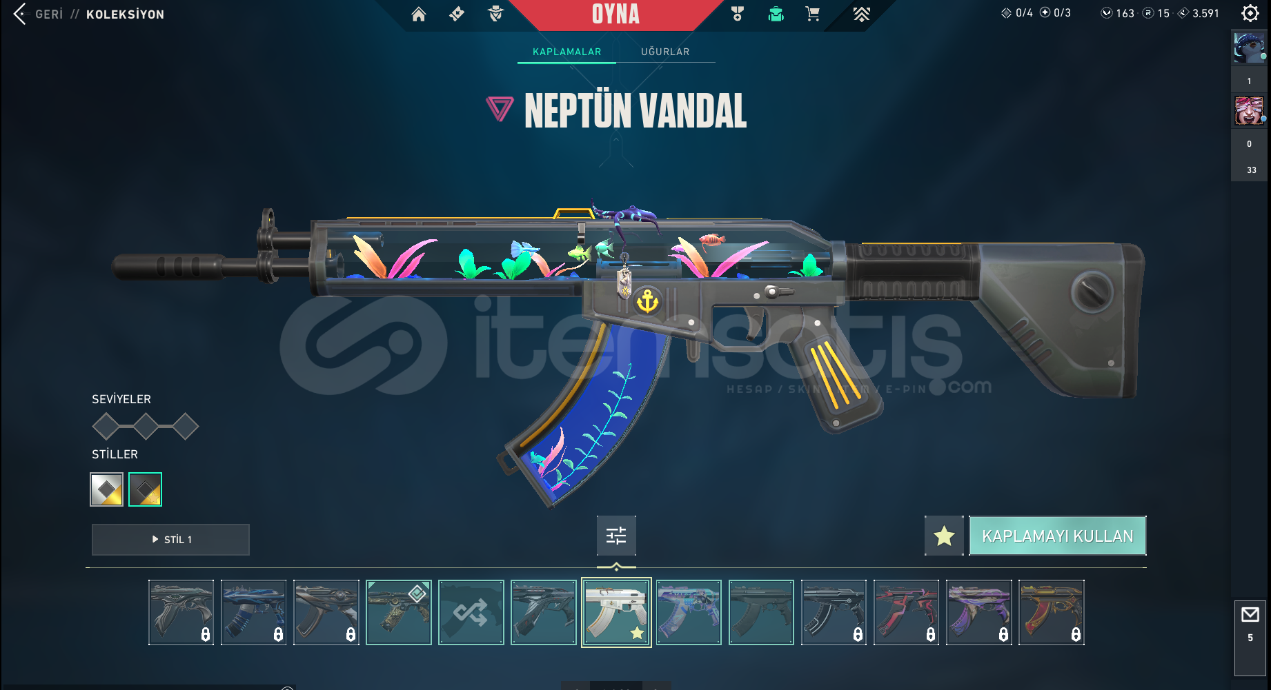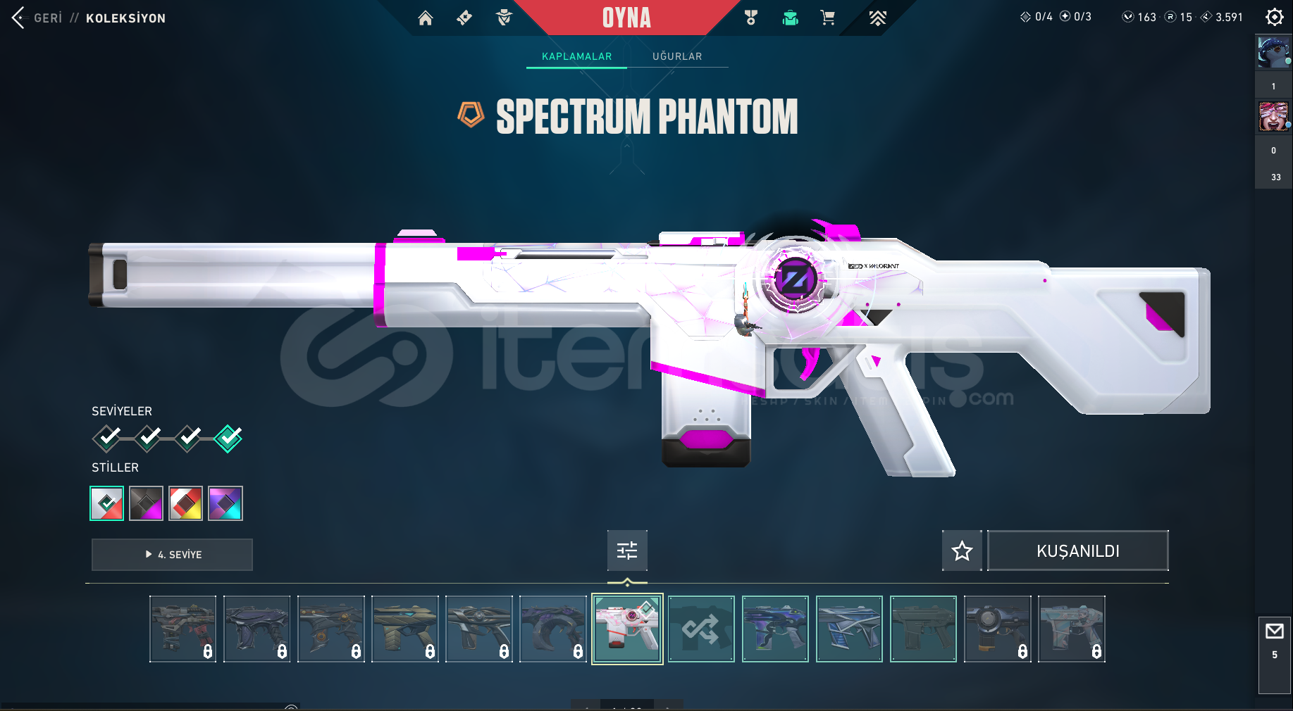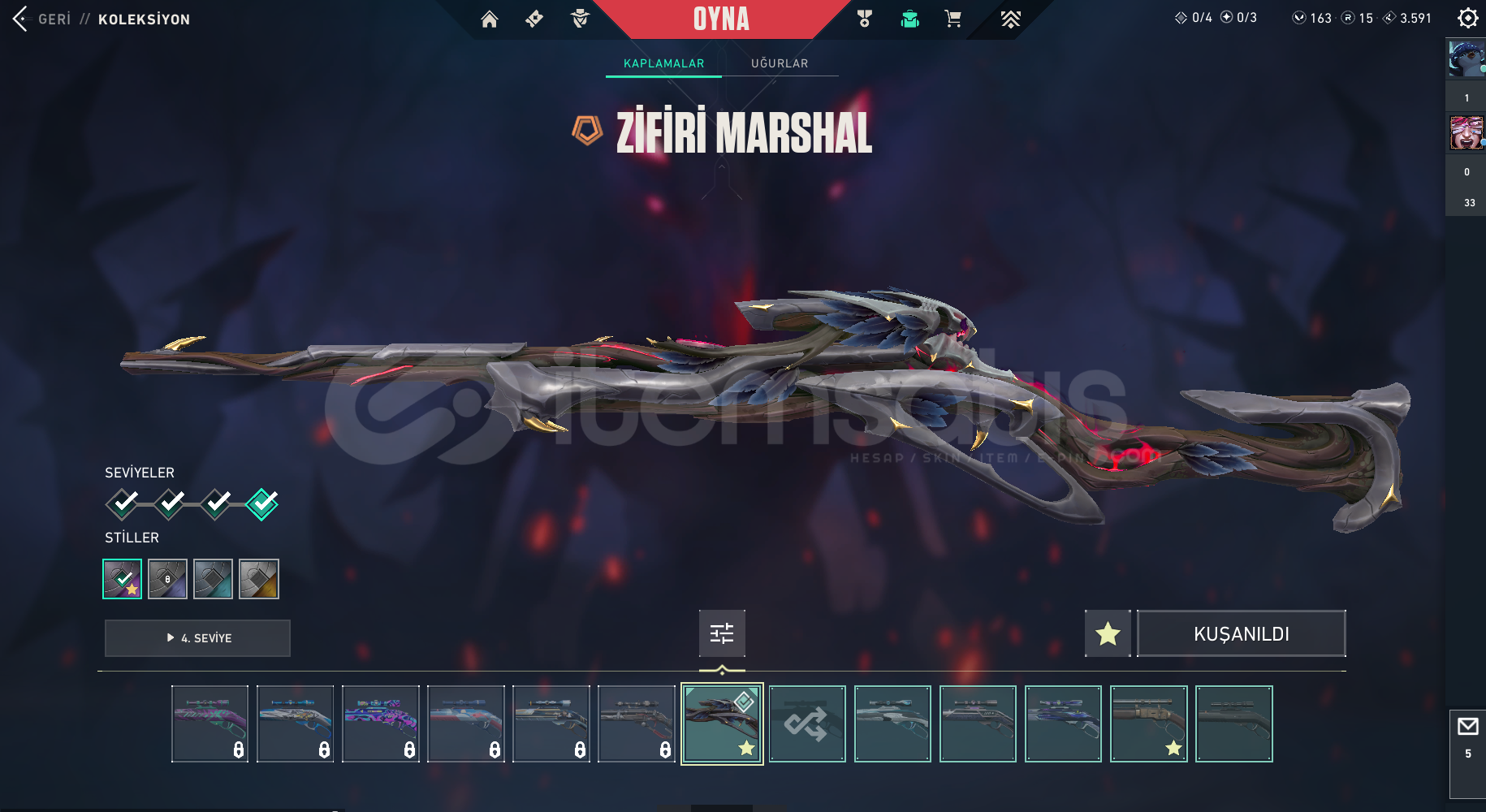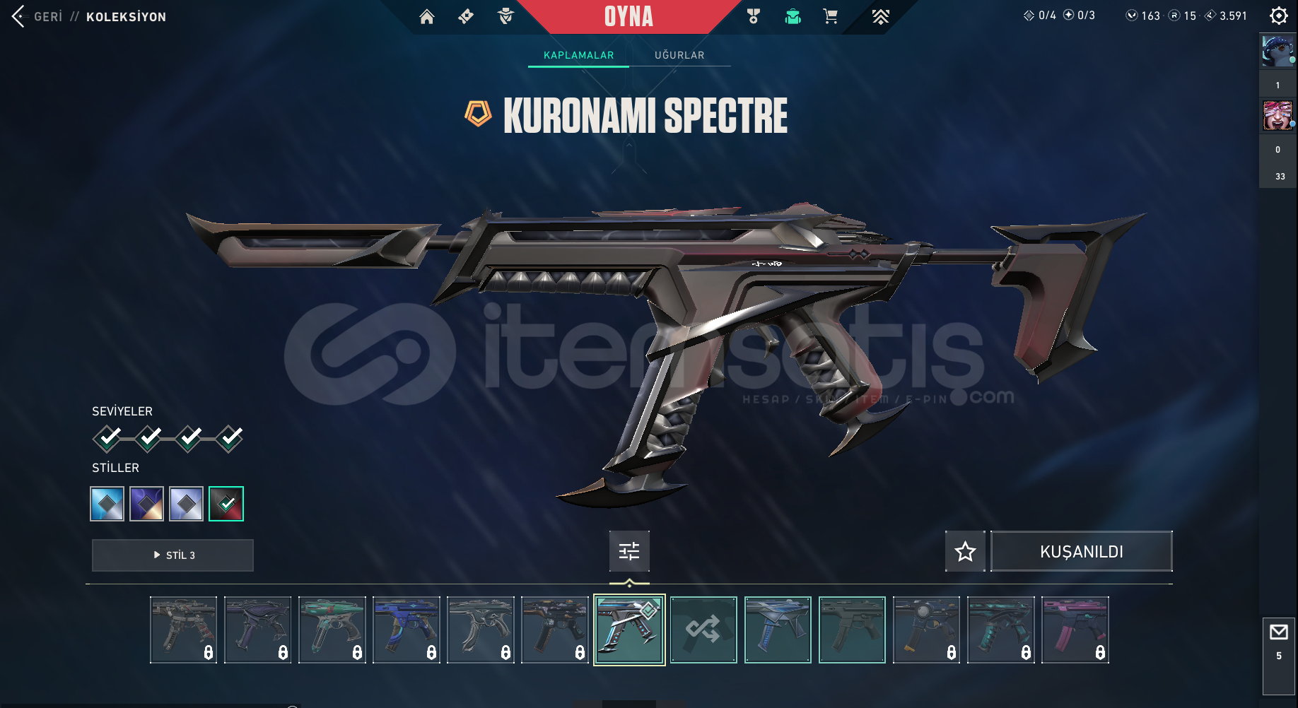 İçindeki skinler ;Zifiri ClassicSpectrum PhantomAeomandır VandalNeptun VandalSeri Tetik MarshalZifiri MarshalŞimşek BıçağıKuronami SpectreEvori GhostSırçiçeği sheriff