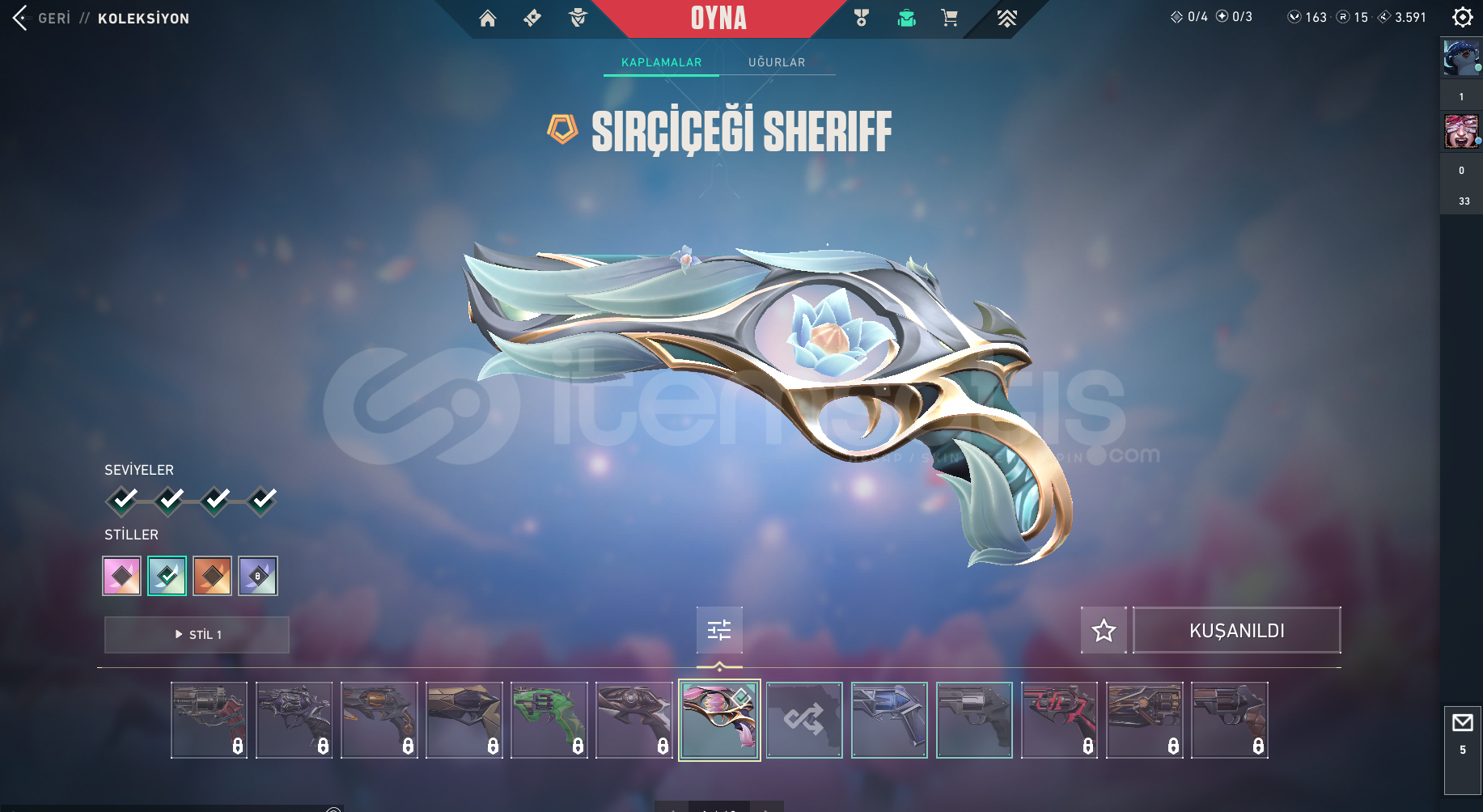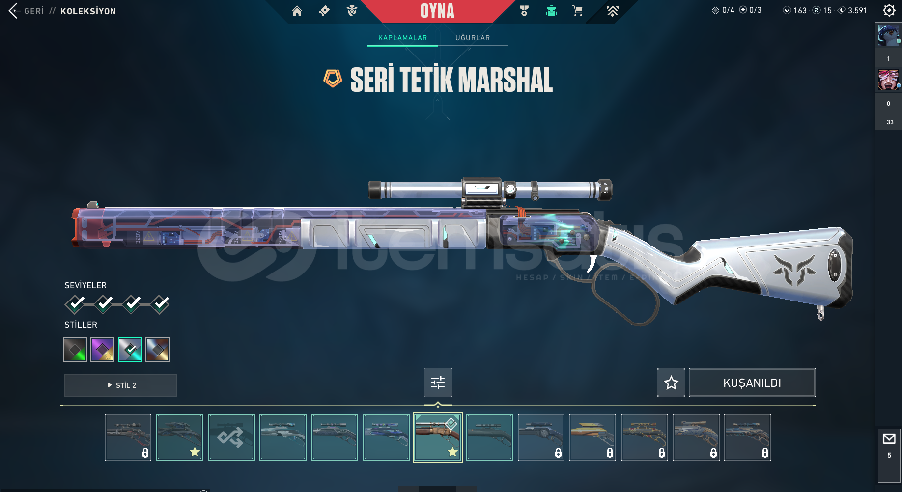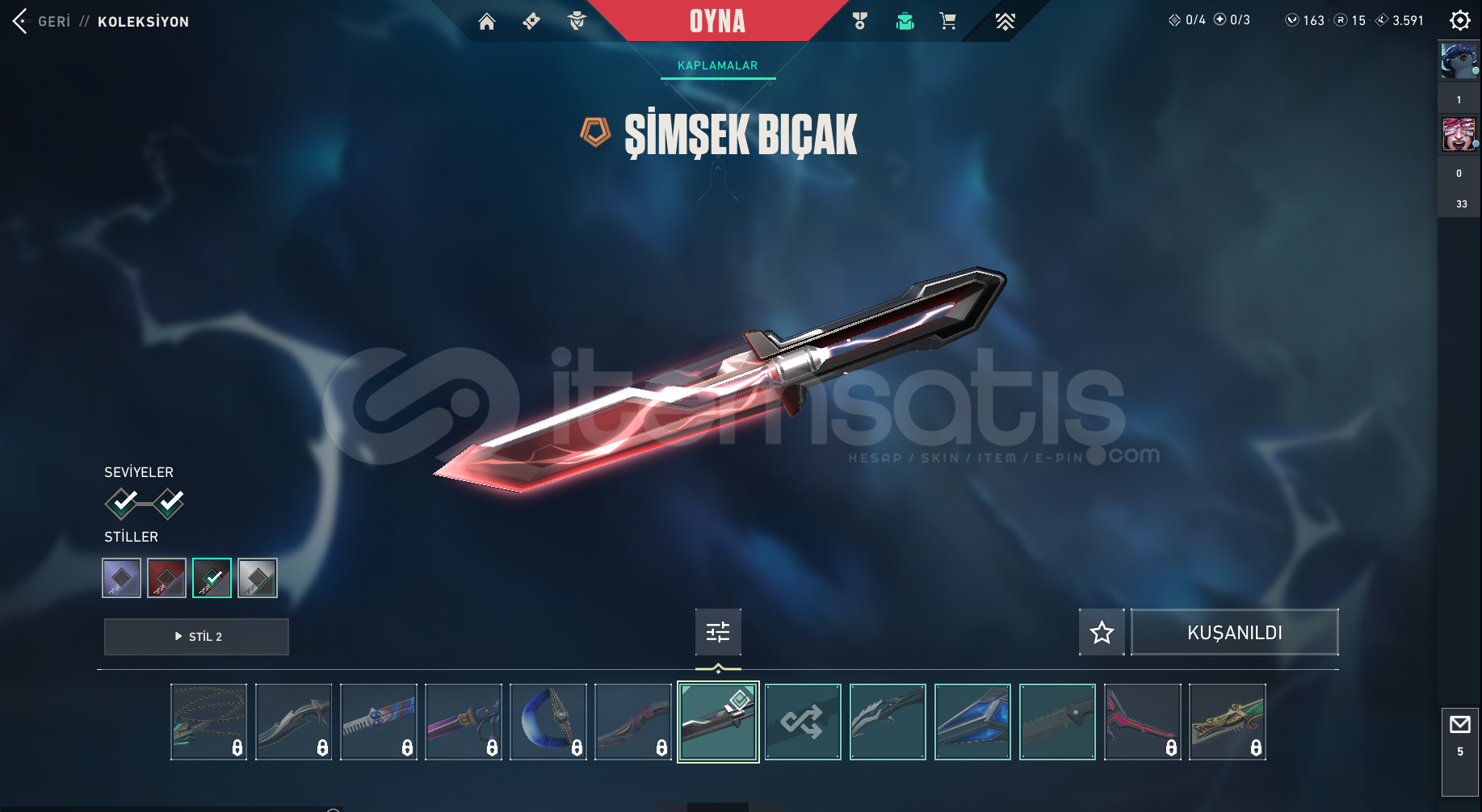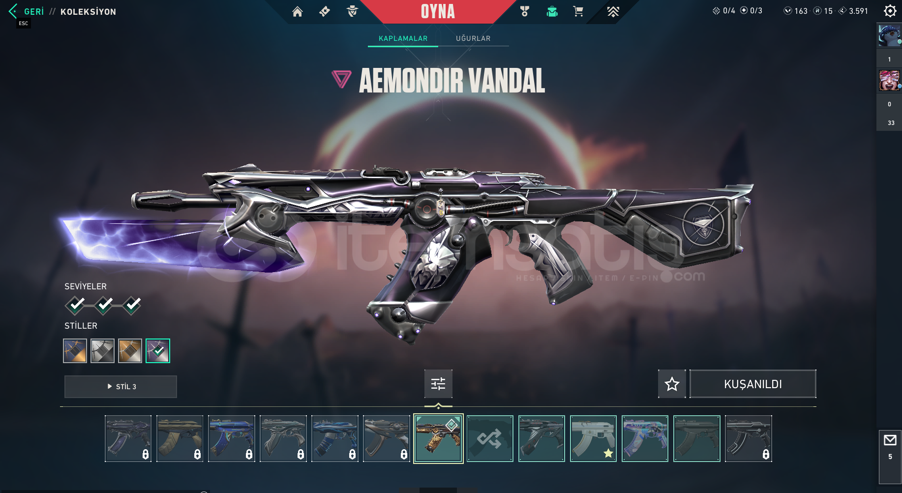 İçindeki skinler ;Zifiri ClassicSpectrum PhantomAeomandır VandalNeptun VandalSeri Tetik MarshalZifiri MarshalŞimşek BıçağıKuronami SpectreEvori GhostSırçiçeği sheriff