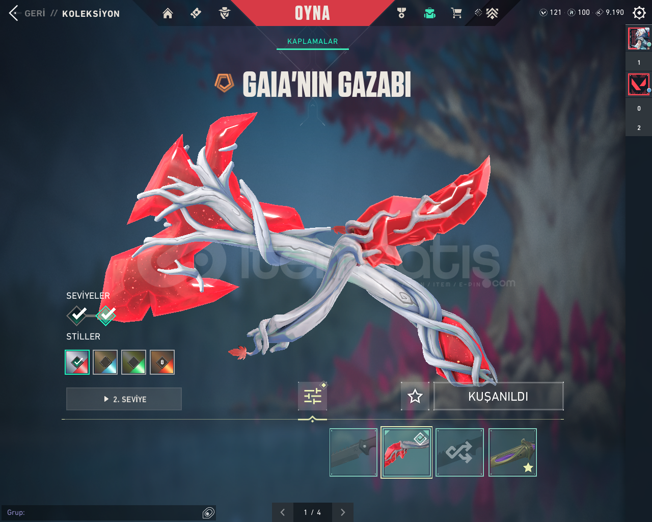 Bıçak Skinleri; Gaianın Azabı Ve Kum Fırtınası Hançeri. Extra olarak hesabın içinde 1 adet battelpass skinleri + 121vp Mevcuttur.