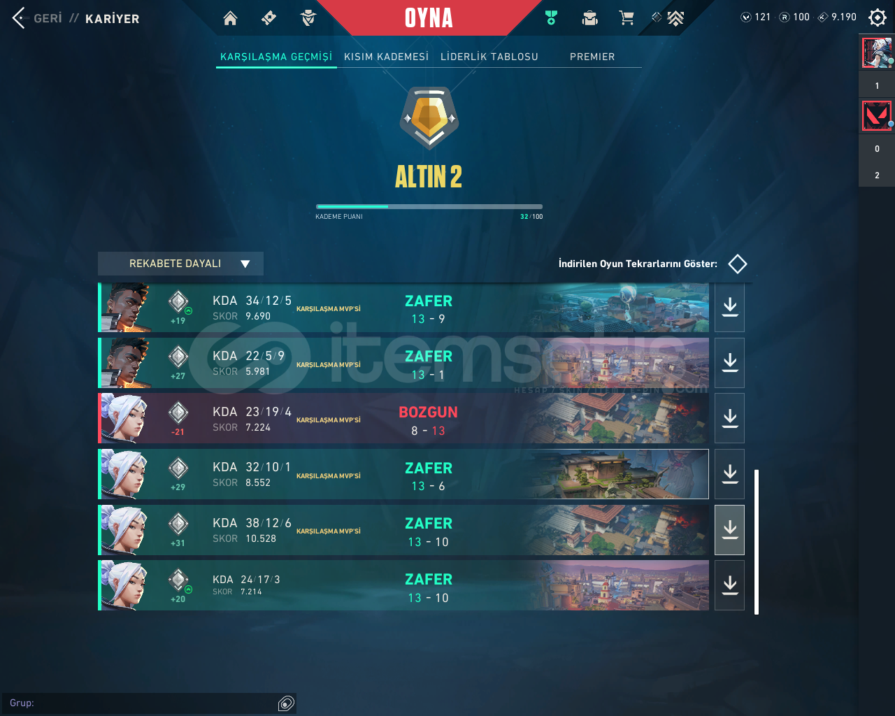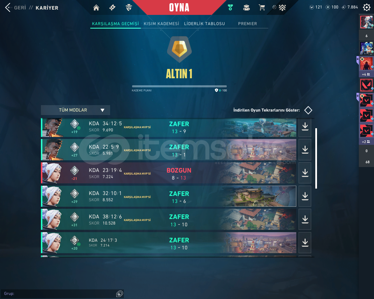 Yüksek kda , full mvp kariyer mainlik hesap. İlk mail ile teslim edilecektir Silah Skinleri ; Gaia - Neptün Vandal Oni Phantom -Yağmacı Sherrif - Fatih GhostBıçak Skinleri; Gaianın Azabı Ve Kum Fırtınası Hançeri. Extra olarak hesabın içinde 1 adet battelpass skinleri + 121vp Mevcuttur.