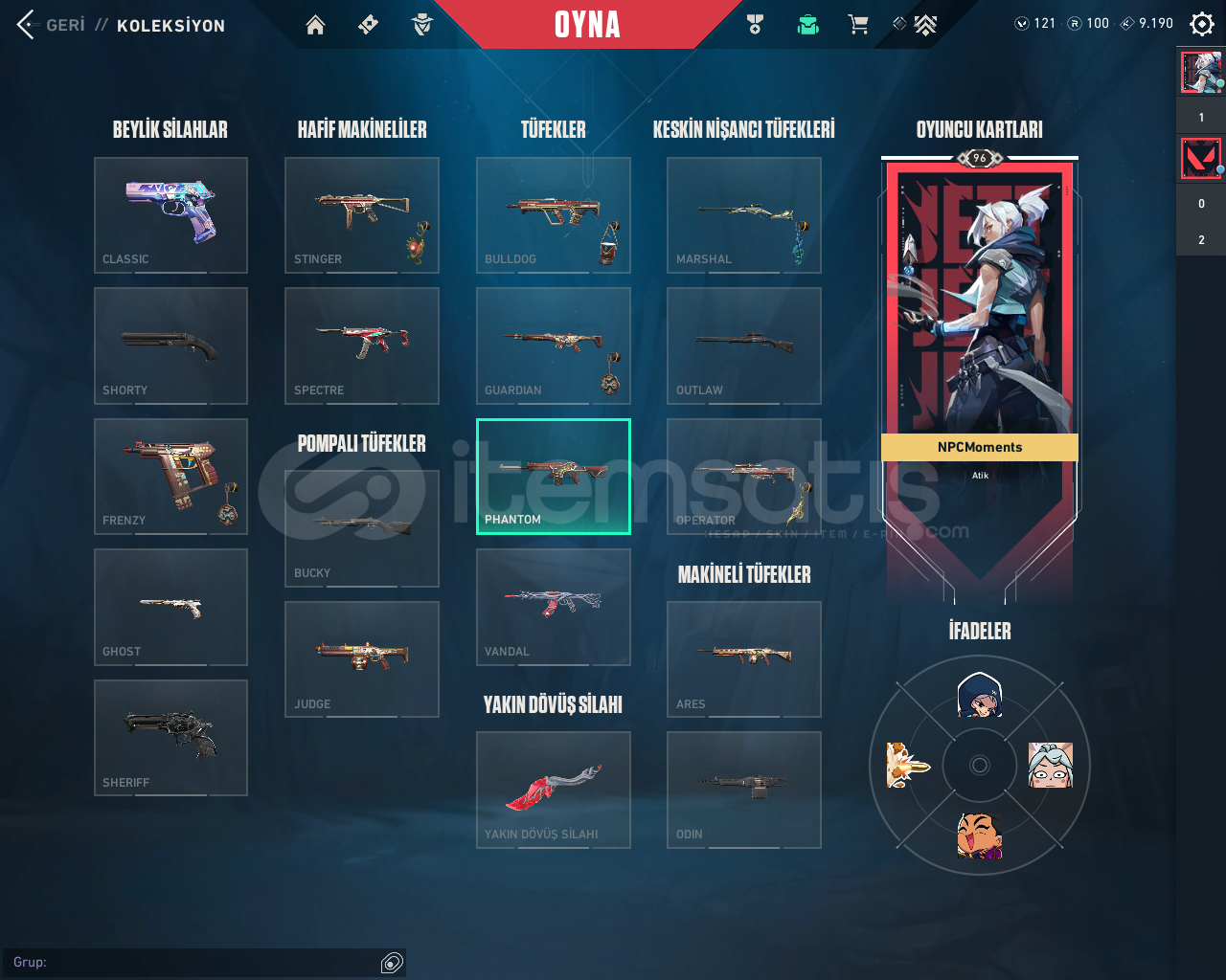 Silah Skinleri ; Gaia - Neptün Vandal Oni Phantom -Yağmacı Sherrif - Fatih Ghost