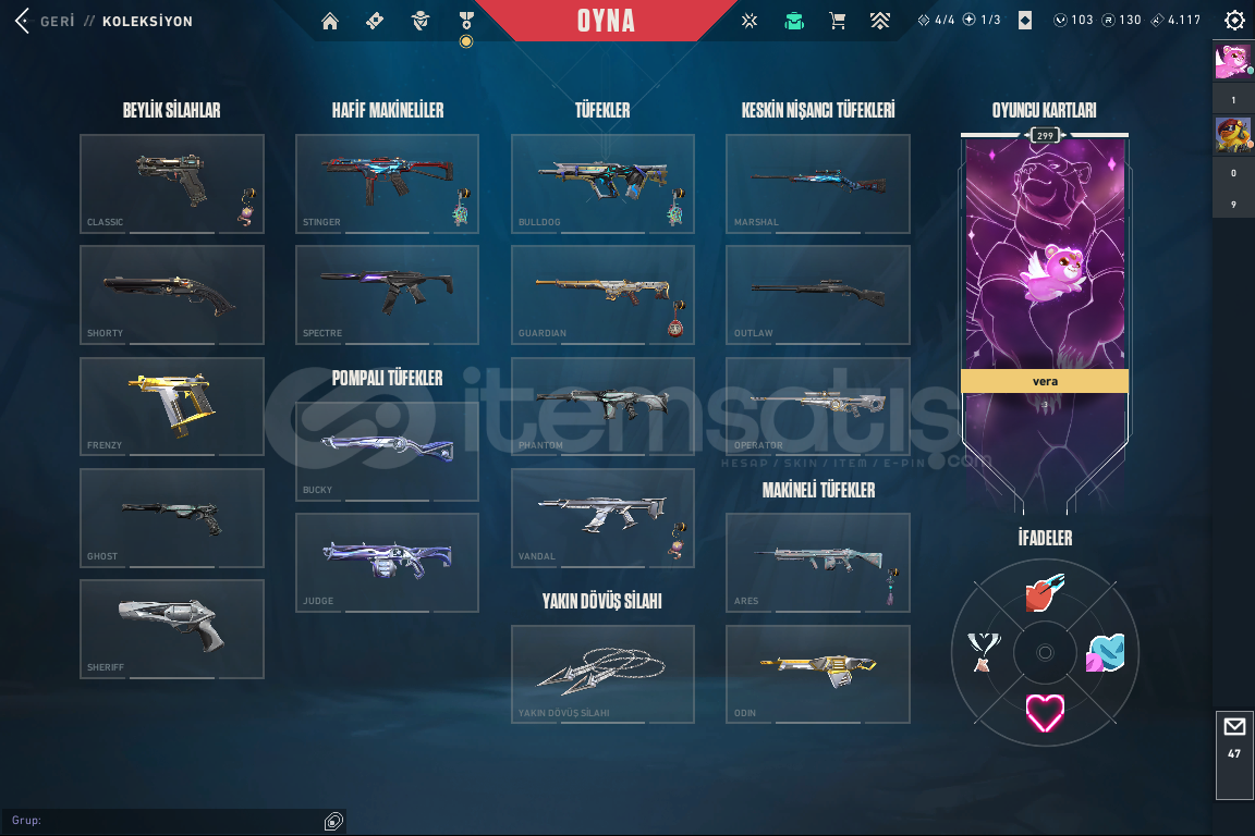 Hesap rank: Gümüş3İçindekiler:soğuk çelik classicasil frenzyyağmacı ghostiyon sheriffanomali spectreoni guardianyağmacı phantomasil phantomkuronami vandalgaia vandalcesuryürek vandaliyon vandaloni vandalulupençe vandalneptün vandalköken operatörasil odinkuronami no yaiba /bıçaközel harekat kelebek /bıçak6 adet battlepasssoru,detay için dm