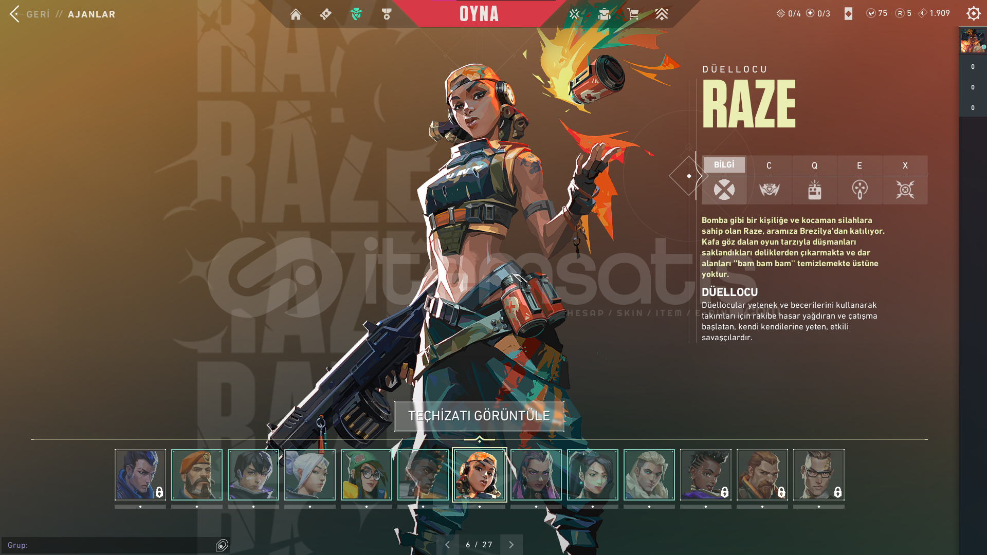 ⭐ Hesapta 9 ajan açıktır. Iso , Raze , Reyna , Killjoye, Jett , Brimstone , Sova , Sage , Phoneix