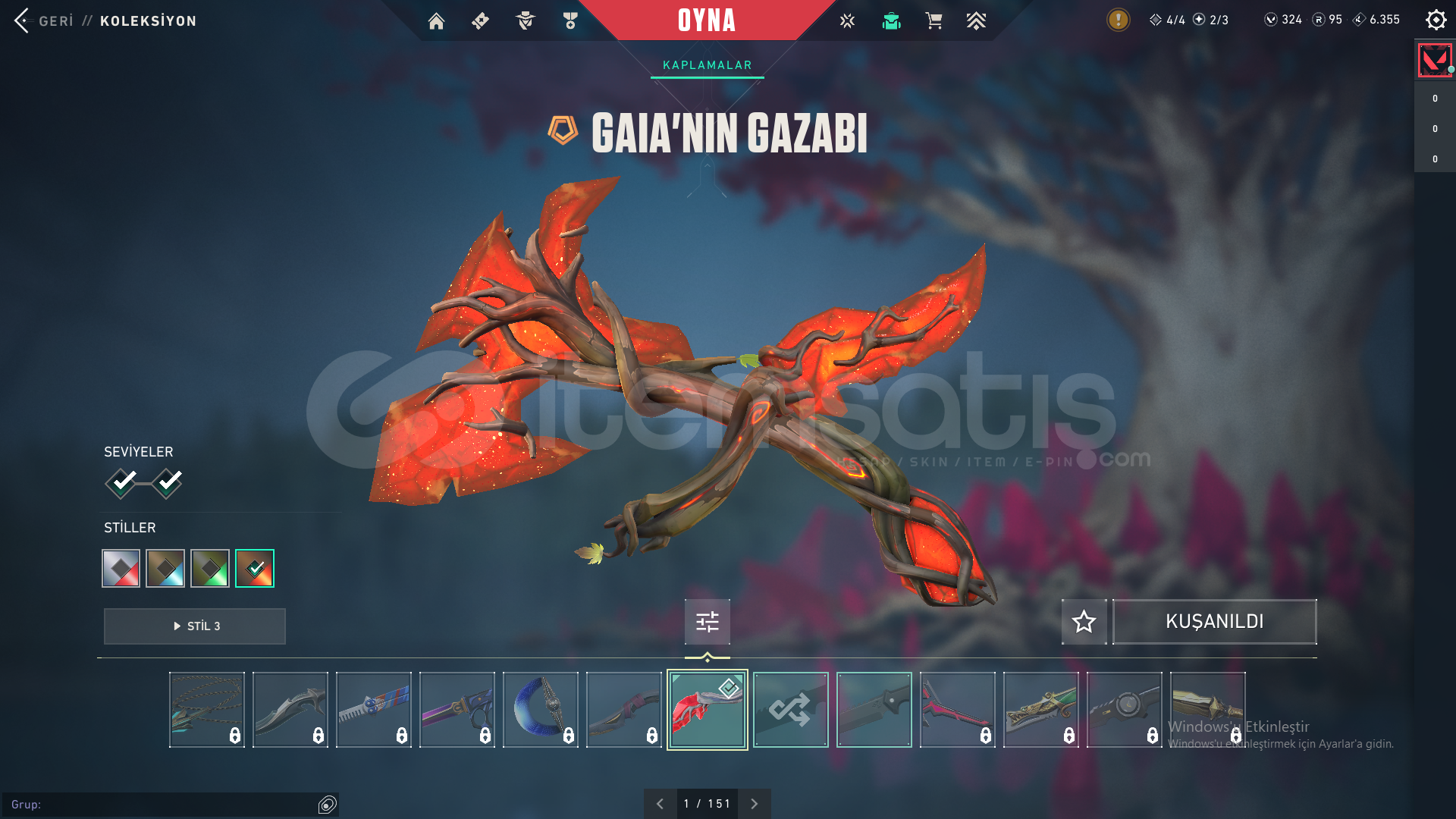 Skin olarak sadece Gaianın Gazabı Bıçak vardır.