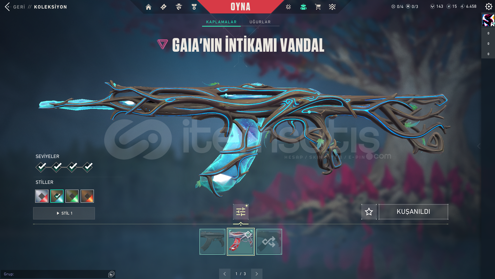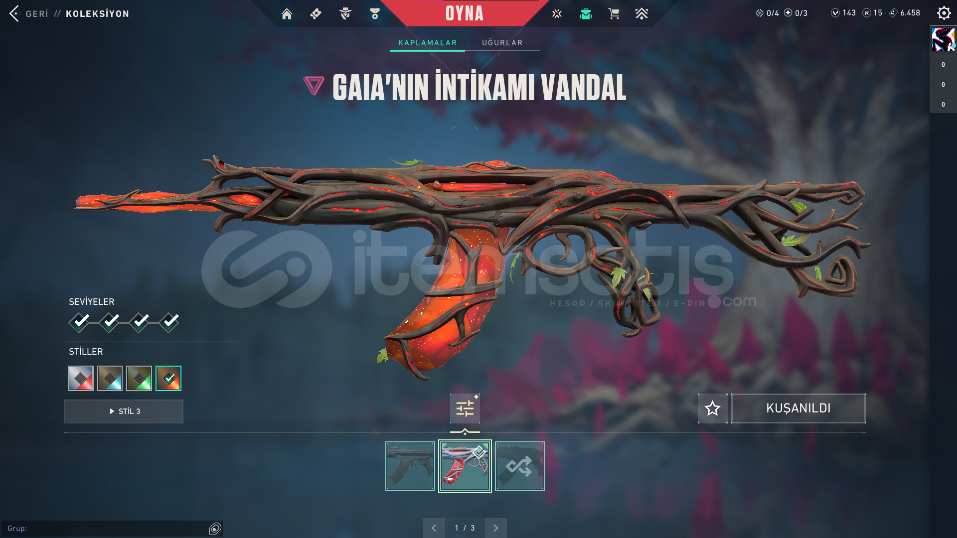 ⭐ Hesapta Gaia'nın İntikamı Vandal ve Muharebe Guardian gibi skinler bulunmaktadır.