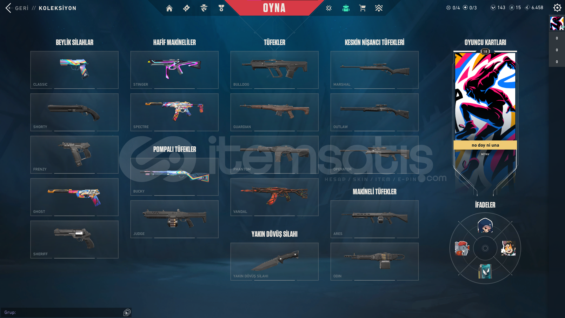 ⭐ Hesapta 8 ajan açıktır. Açık ajanlar Reyna , Cypher , Iso , Jett , Brimstone , Sova , Phoneix ve Sage şeklindedir.