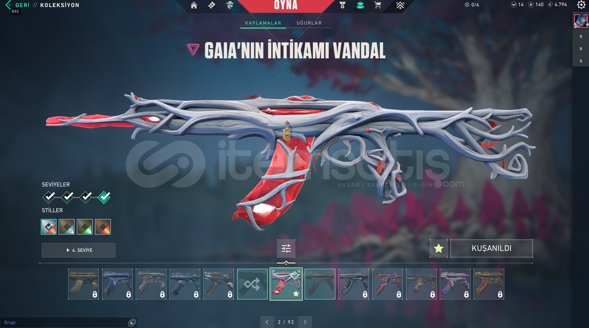 Valorant skinli E-Postalı hesaptırGAİA VANDAL BULUNAN HESAPTIR.Rank: BRONZ 1Sunucu: TRMağaza: TRMailli hesaptır bilgileri size devredilmektedir, mevcut bilgileri kendi bilgileriniz ile değiştirebilirsiniz.Ürünler fotoğraftakiler ile bire bir aynı hesaptır, farklı hesap değildir