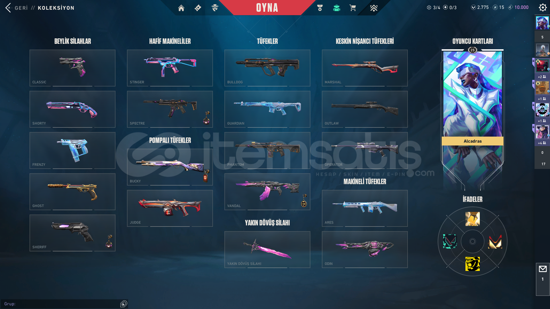 Hesapta bulunan tüm skinlerin görselleri paylaşılmıştır.