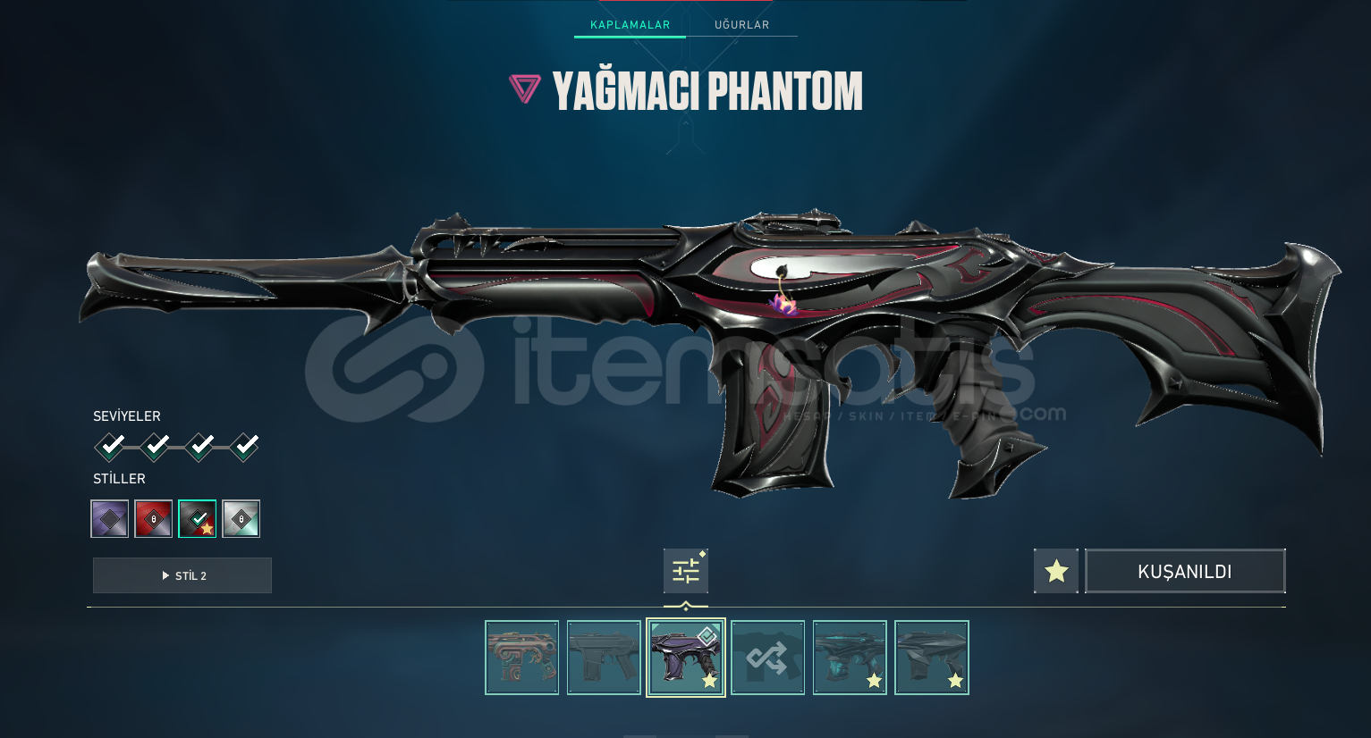 ve bir çok skin daha bulunuyor yağmacı ve ışık muhafızı seti alınmıstır cogu silahta skin vardır pazarlık olur suan guncel rank dia 1 dir
