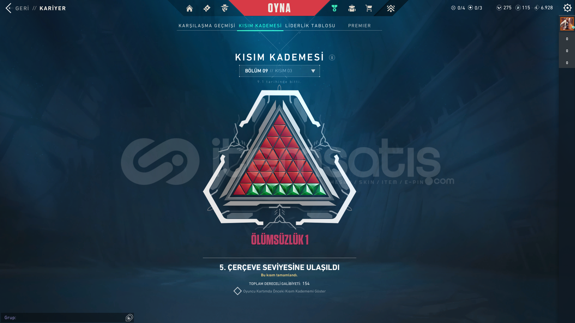 Hesap 3 sezon önce İmmo 1 di şuan hesabın rankı belli değil ama Yüce lobide başlıyor.