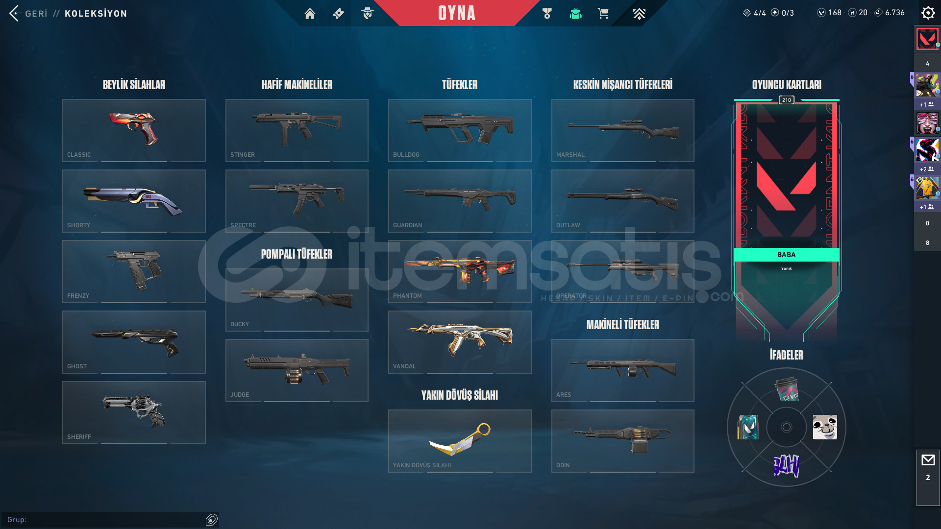 HESAP SUNUCU TR'DİRMAX ELMAS 3 GÖRMÜŞTÜRİÇİNDEKİLER;AFET PHANTOMGAİANIN İNTİKAMI PHANTOMASİL 2.0 PHANTOMYİTİK VANDALCHAMPIONS 2025 VANDALASİL VANDALIŞIK MUHAFIZLARI VANDALONİ VANDALARCANE VANDAL NOT: geri kalan skinler fotografta mevcuttur gerekli bilgi dm den verilecektir