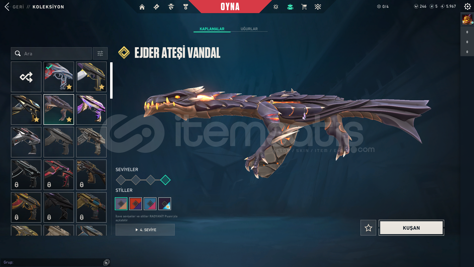 HESAPTAKİ SKİNLER : ŞİMŞEK SETİ VARDIR PHANTOM - OUTLAW - FRENZY - SPECTRE - ŞİMŞEK BIÇAK + CHAMPİONS 2025 SETİ VARDIR + EJDER ATEŞİ VANDAL - ASİL VANDAL - GAİANIN İNTİKAMI VANDAL - YILDIZ BELASI OPARETOR - SOĞUK ÇELİK CLASSİC - IŞIK MUHAFIZLARI SHERİFF - ULUPENÇE GHOST