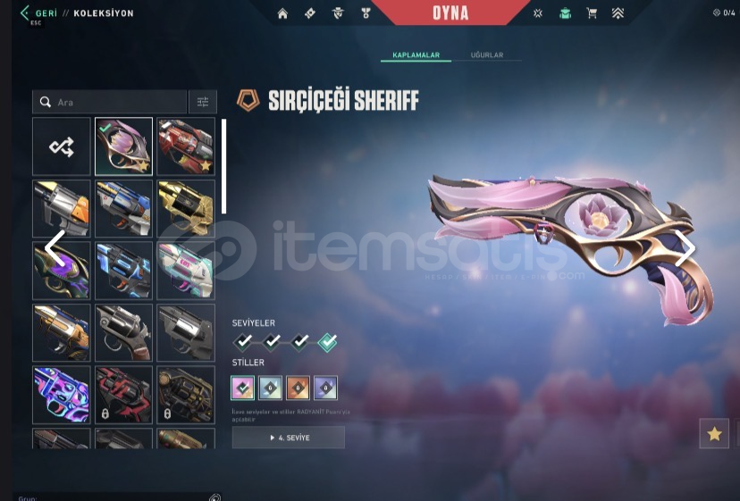 resimlerde gördüğünüz gibi hesap gırtlak dolusu hesaptır, isteyebileceğiniz en popüler skinler mevcuttur. Özellikle champions 2021 (sadece vandal) champions 2023,champions 2025,kaos vandal ve birçok skin mevcuttur, ve hesapta 4570 VP vardır, ciddi alıcılara çok olmamak şartı ile pazarlık payı vardır. Şimdiden hayırlı olsun