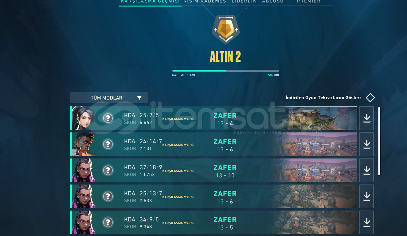 Hesap Gold 2 50 KP`dir Full MVP Olarak Rankı Açılmıştır Mail Değişimi YapılacaktırLÜTFEN SATIN ALMADAN ÖNCE KAYIT AÇINIZ