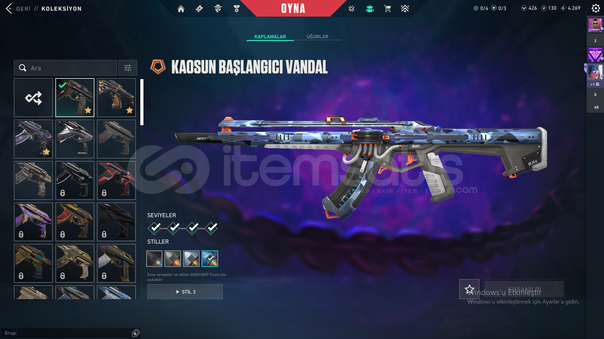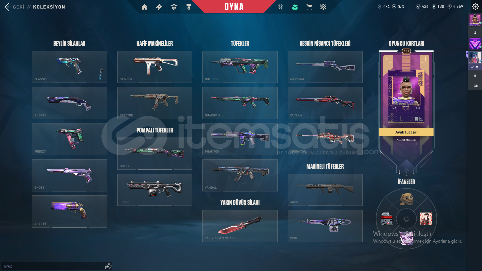hesapta Yağmacı,Aemondır,Kaos vandal var.Seri Tetik var.Ulupençe ghost,Delipop operatör var.Şimşek bıçak ve Yıldızparçalayan(yıldız belası 2.0)bıçak vardır ayrıyetten 2 tane battle pass full ürünler var.131 Seviye Gold 2 hesap.hesabı anlaşırsak fiyatıda anlaşabiliriz :D