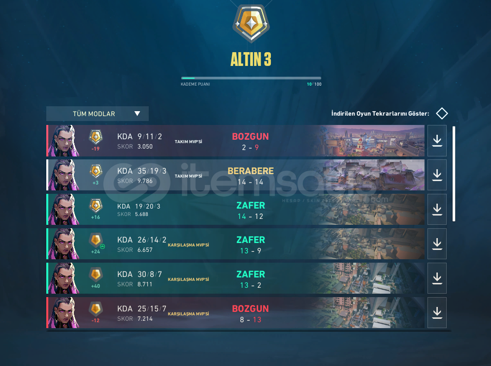 Hesapta skin bulunmuyor MMR yüksek Level 24 9 Ajan açık