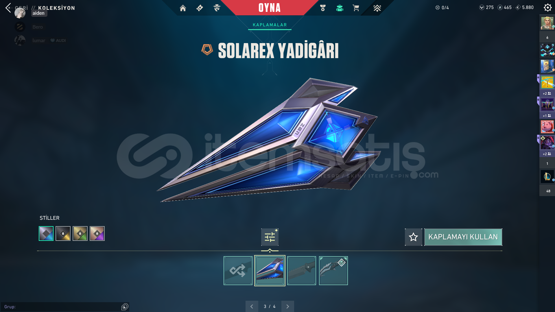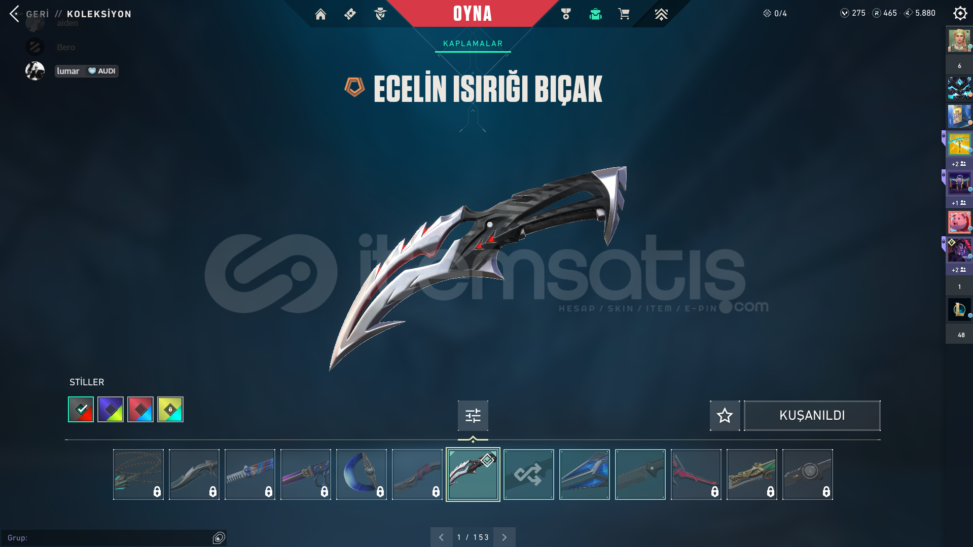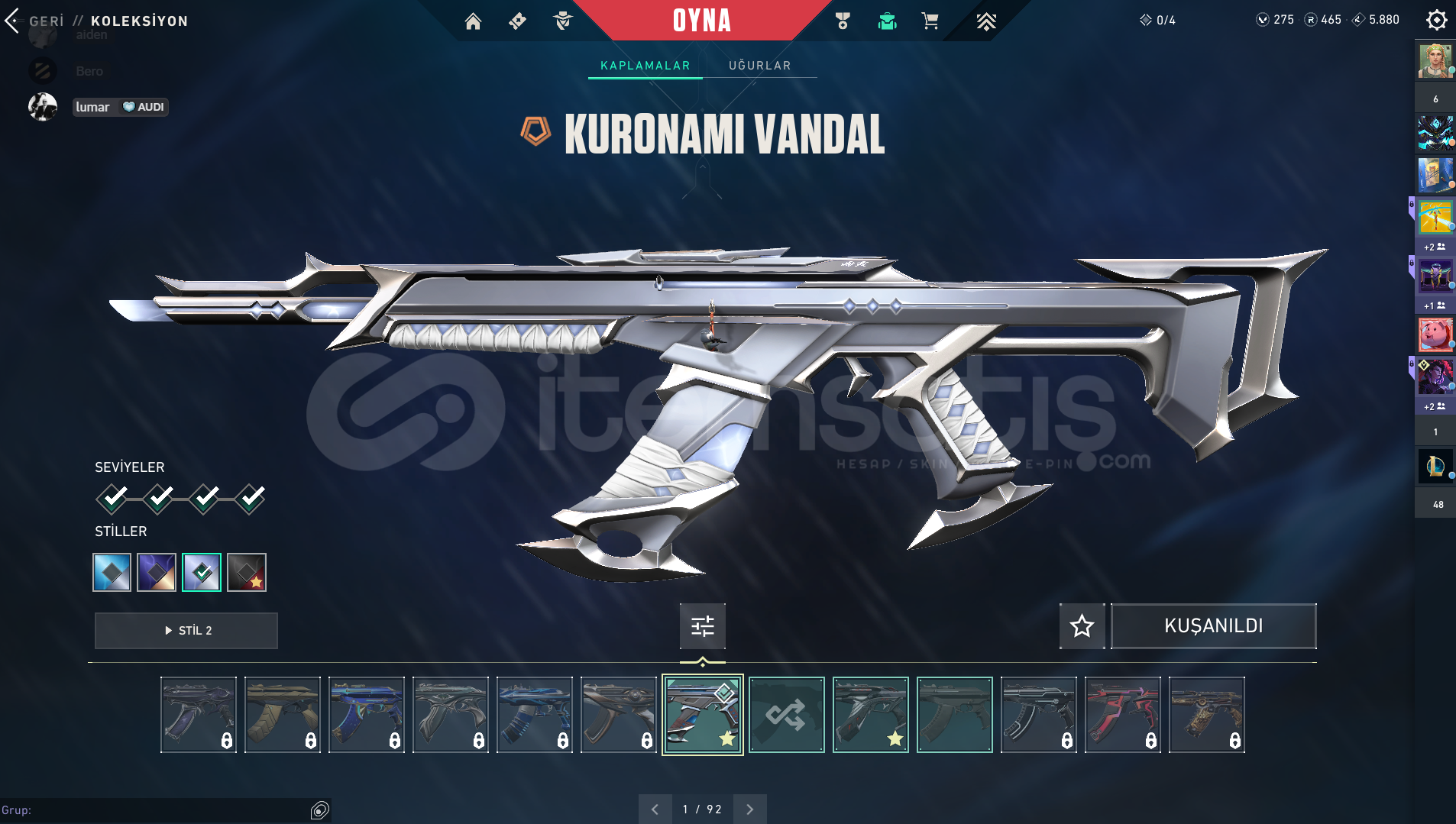 ⭐GÜMÜŞ 1 +KURONAMİ VANDAL + BIÇAKLI +28 SKİN⭐