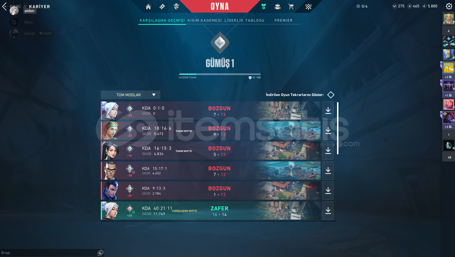 Ürün Hakkında Bilgi;İLANI SATIN ALDIĞINIZDA 7/24 OTOMATİK OLARAK TESLİM EDİLİR.RANK - GÜMÜŞ 1HESAP SEVİYESİ - 155SKİN SAYISI - 29VP SAYISI - 275+ 100.000 BAŞARILI İŞLEM İLE GÜVENLE ALIŞVERİŞ YAPABİLİRSİNİZ