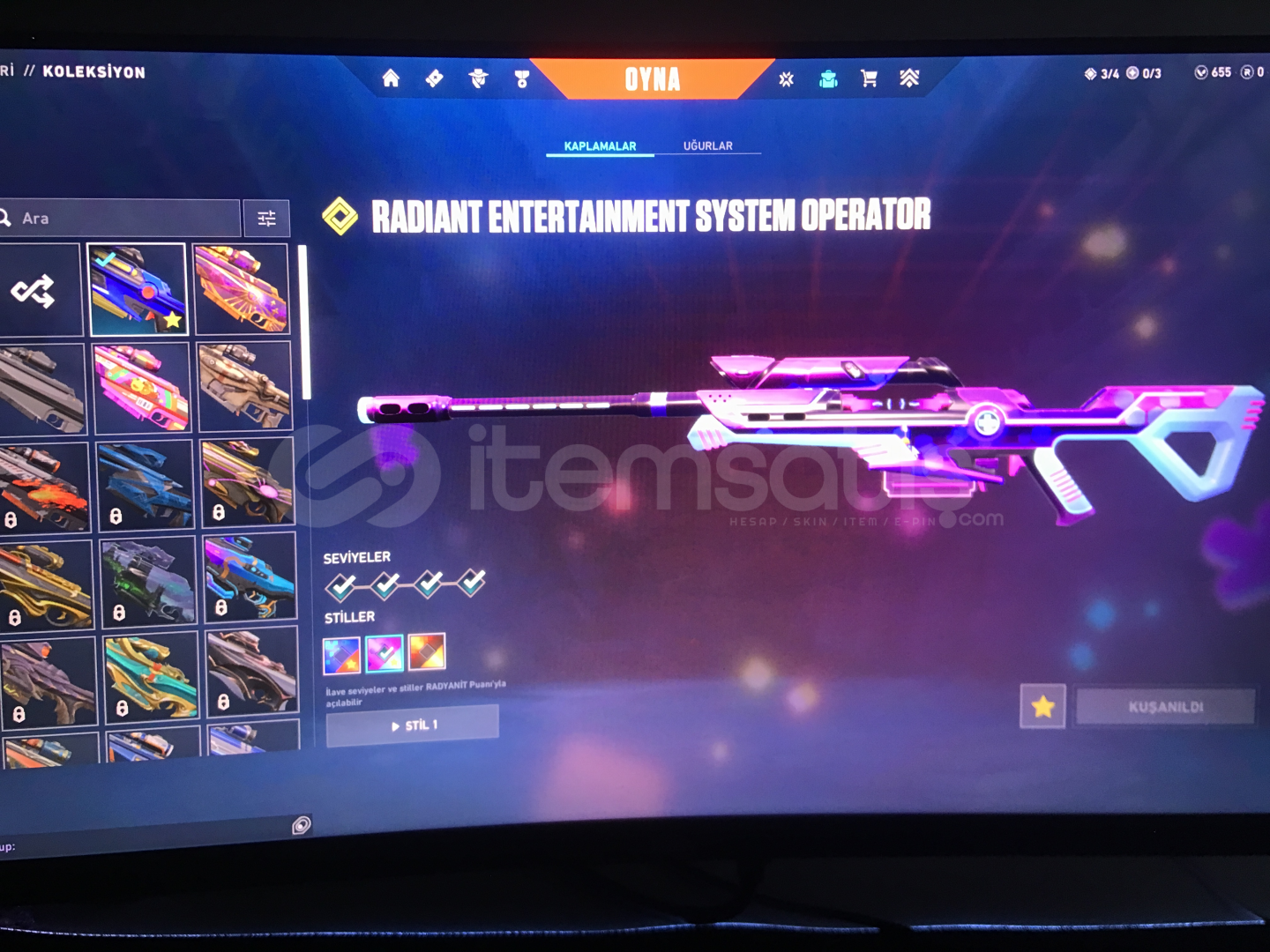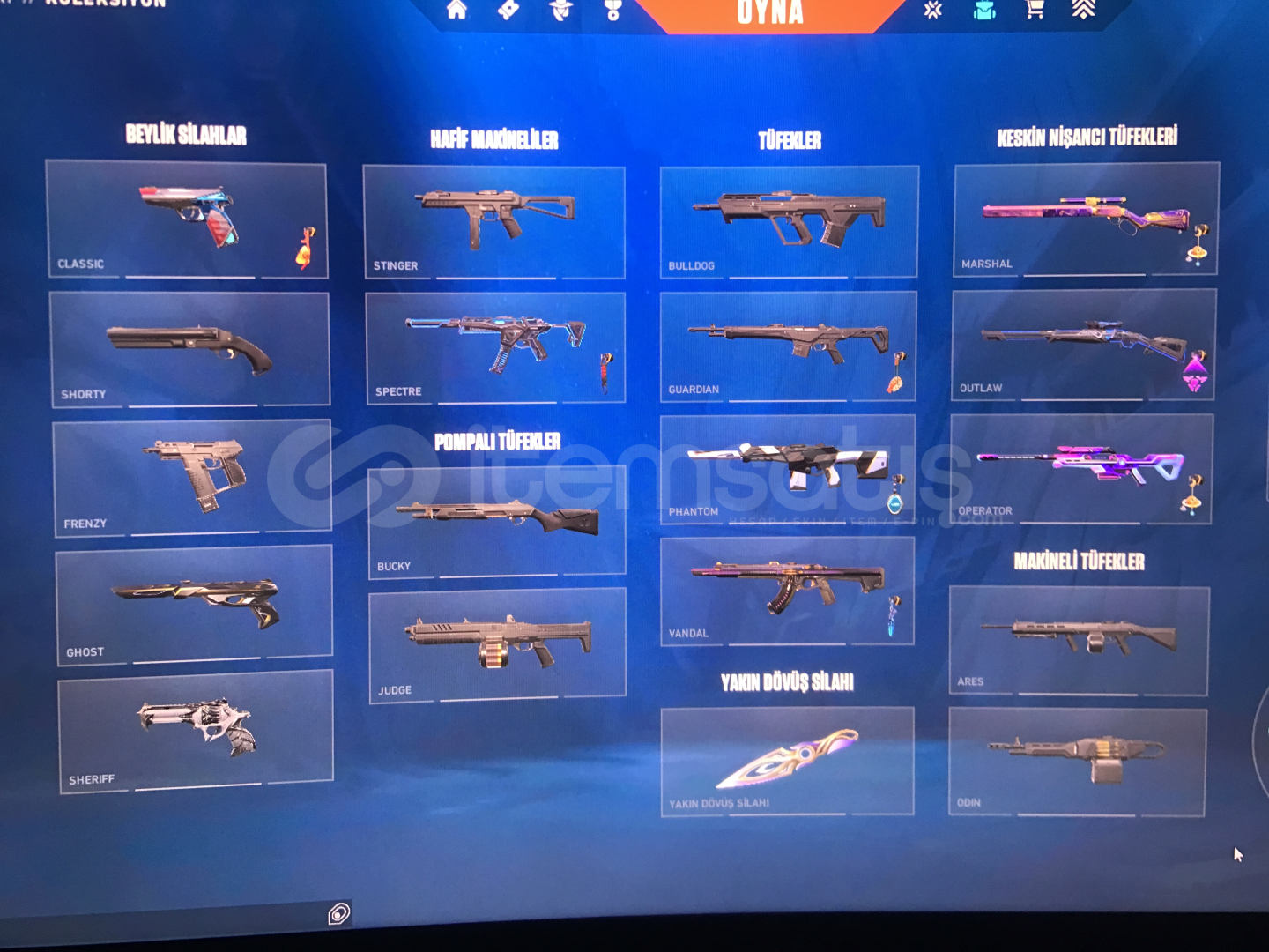 BURADA YAZMAYAN DİĞER SİLAHLARDA DEĞERLİ SKİN YOKTUR BATTLE PASS VARDIRVandal -Champions 2025-Dolmir’in intikamı-Kaos-exo-yitik-ulupençe-kuronomi-asilPantom-asil-radiant enterteinment system-onetap oraBıçaklar-oni katana-sırçiçeği kunai-champions 2025 kelebekOperatör-radiant enterteinment systemOutlaw-rgxMarshall-seri tetikSheriff-yağmacı-kuronomiGhost-yağmacı-ulupençeClassic-asilF...