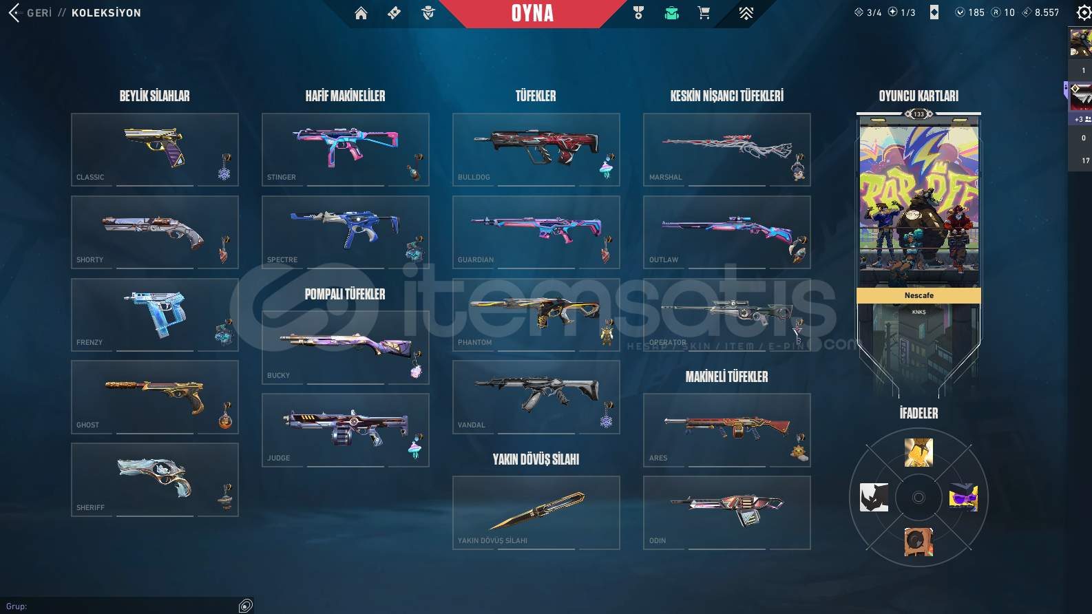 Oyunu bıraktığım için hesabı satıyorum mail devri yapılacakHesabın içindekilerAsil ClasiccCesur Yürek Ghost Fatih Ghost Sırçiçeği Sherrifİyon Spectre asil Spectre24 Champions Phantom25 Champions Vandal ( Set )Yağmacı Vandal Onetap ORa vandal Dolmirin İntikamı Vandal Yıldız Belası Vandal Gaia Marshall Köken Operatör Oni A...