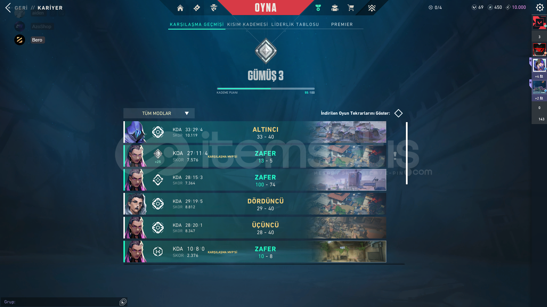 Ürün Hakkında Bilgi;İLANI SATIN ALDIĞINIZDA 7/24 OTOMATİK OLARAK TESLİM EDİLİR.RANK - SİLVER 3HESAP SEVİYESİ - 219SKİN SAYISI - 26VP SAYISI - 69+ 100.000 BAŞARILI İŞLEM İLE GÜVENLE ALIŞVERİŞ YAPABİLİRSİNİZ