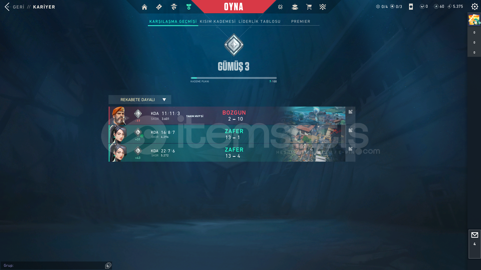 RANK : GÜMÜŞ 3 SKIN : BULUNMUYOR.MAIL: MAIL DEGISECEKSINIZSUNUCU : TRSEVIYE : 21HESABIN GECE PAZARI RESIMLERDE BULUNUYOR.