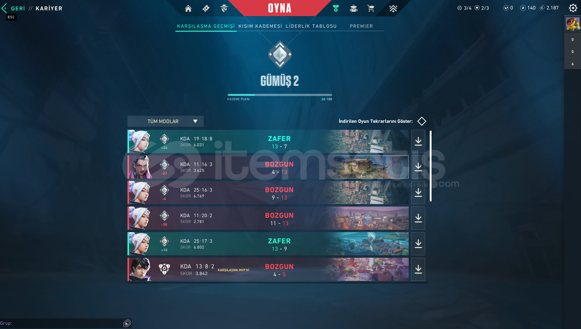 GÜMÜŞ 2 HESAPTIR DÜŞÜK MMR