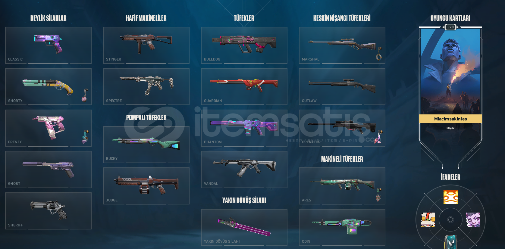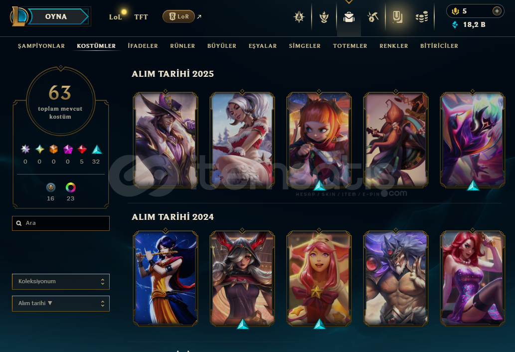 İçinde Spectrum seti ve yağmacı vandal - sheriff vardır.Blastx Phantom vardır.615 Radyanit, 150V vardır.Lol hesabıda mevcuttur. Hanmade 2-3 yıldır oynuyorum. Ban riski sıfırdır.