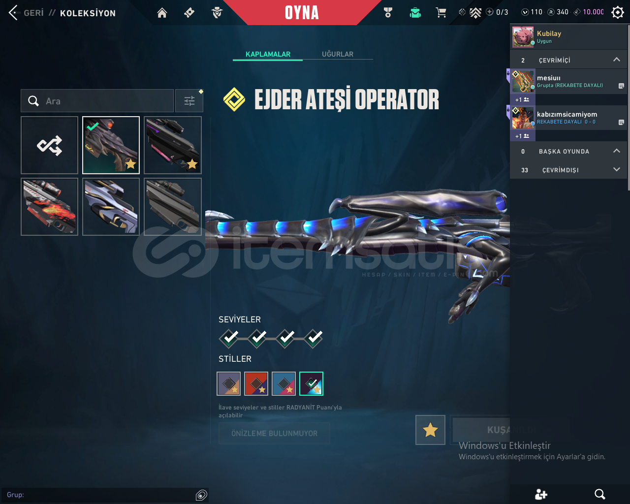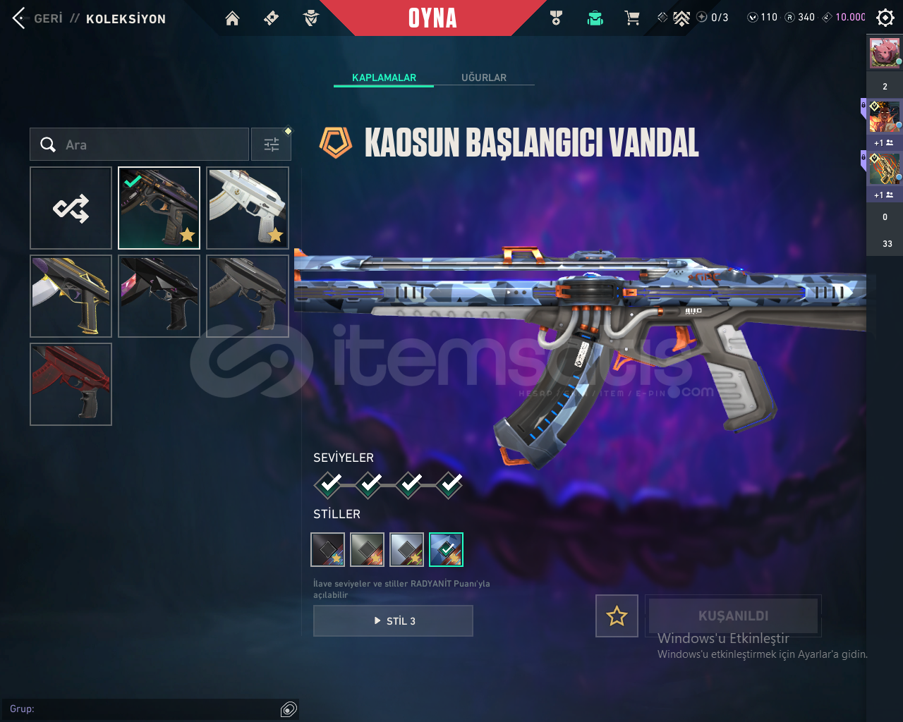 Kişisel Hesabım hesabın ilk sahibi benimAnlık Rank PlatKaosVandal/NeptünVandal/AsilVandal/EjderOpYağmacıGhostSihirpunkGuardianProtokolPhantom/İyonPhantom3TaneBp alındı