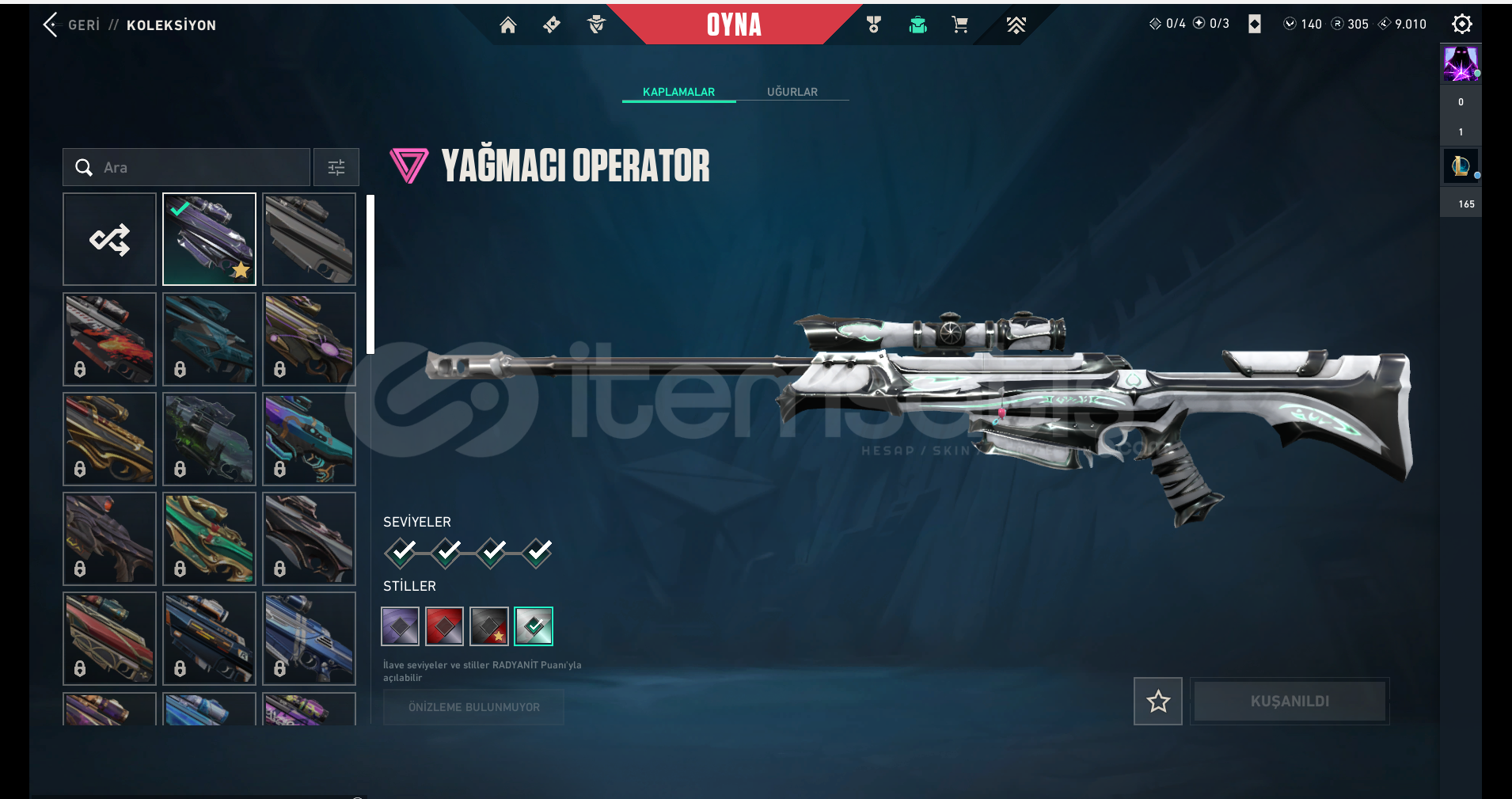 Hesap içerisinde değerli skinler ve ilerlemesi tamamlanmış içerikler bulunmaktadır.