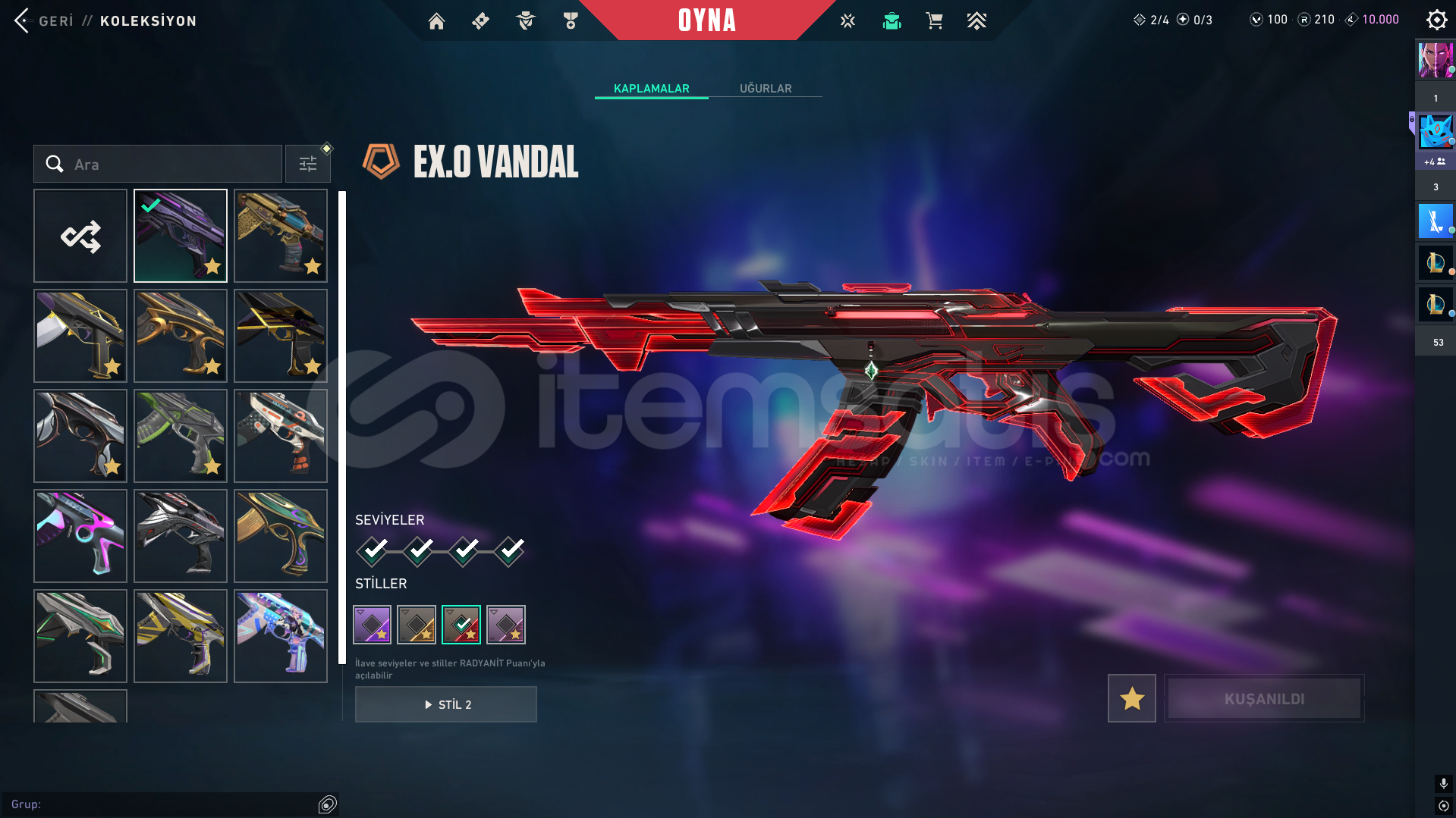 değerli skinler champions 2023 arcane vandal rgx vandal exo set ve bir çok skin