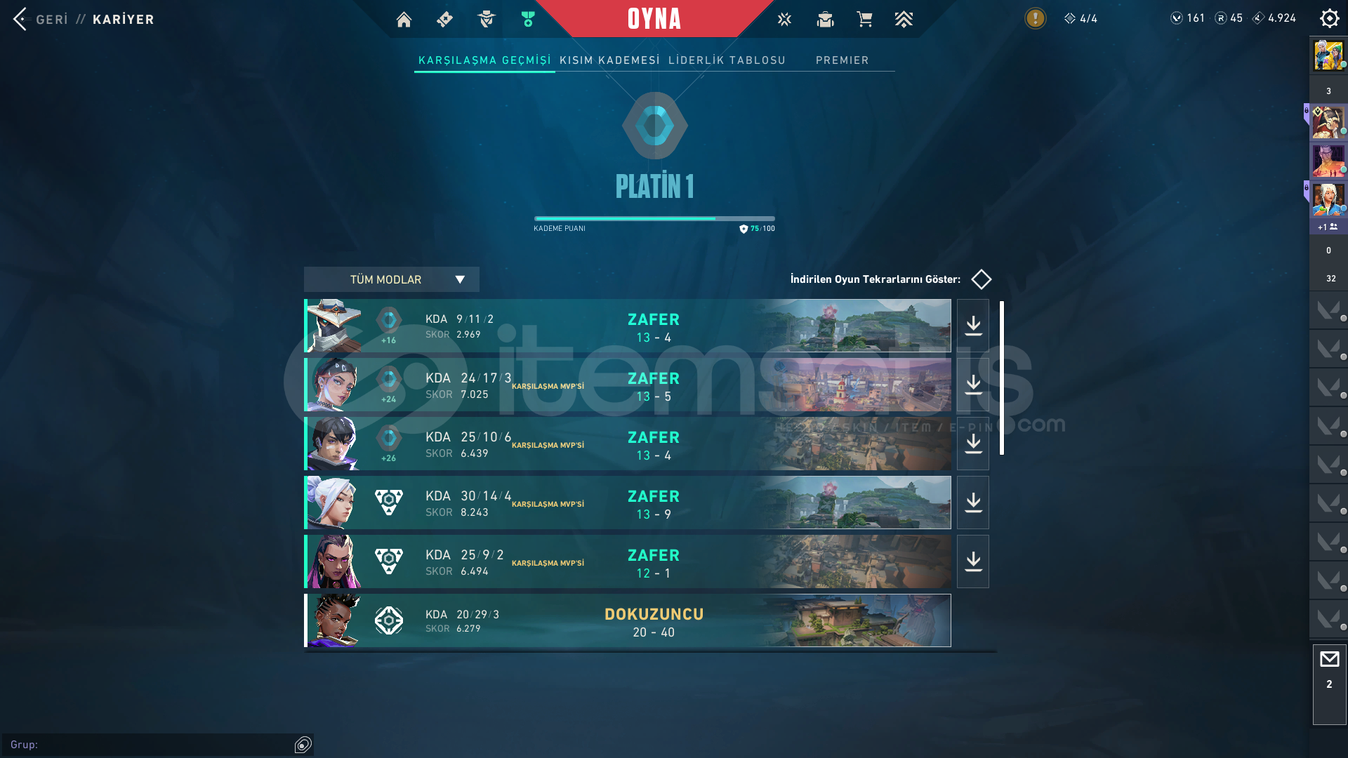 Hesapta asil vandal cesur yürek vandal 3 tane battl pass vardır (tork , ecelin ısırığı ve Galaksi muhafızı) 161 vp var hesapta 123 lvl plat 1 peek plat 3 hesap gayet temiz tr server kendi main hesabım oyunu salmayı düşünüyorum diye satiyorum lütfen gece almayınız 10.30'dan sonra çünkü uyuyorum hesabı veremem sabah alırsanız 12'ye kadar'da veremem 12'den sonra verebilirim mrr orta full plat geliyo maça arada 1 , 1-2 kişi dia oluyo ilk mail var telefon numarası kayıtlı ama silicem mecburen numarayı , isim  04.12.2025 tarihinde değiştirme hakkı gelicek
