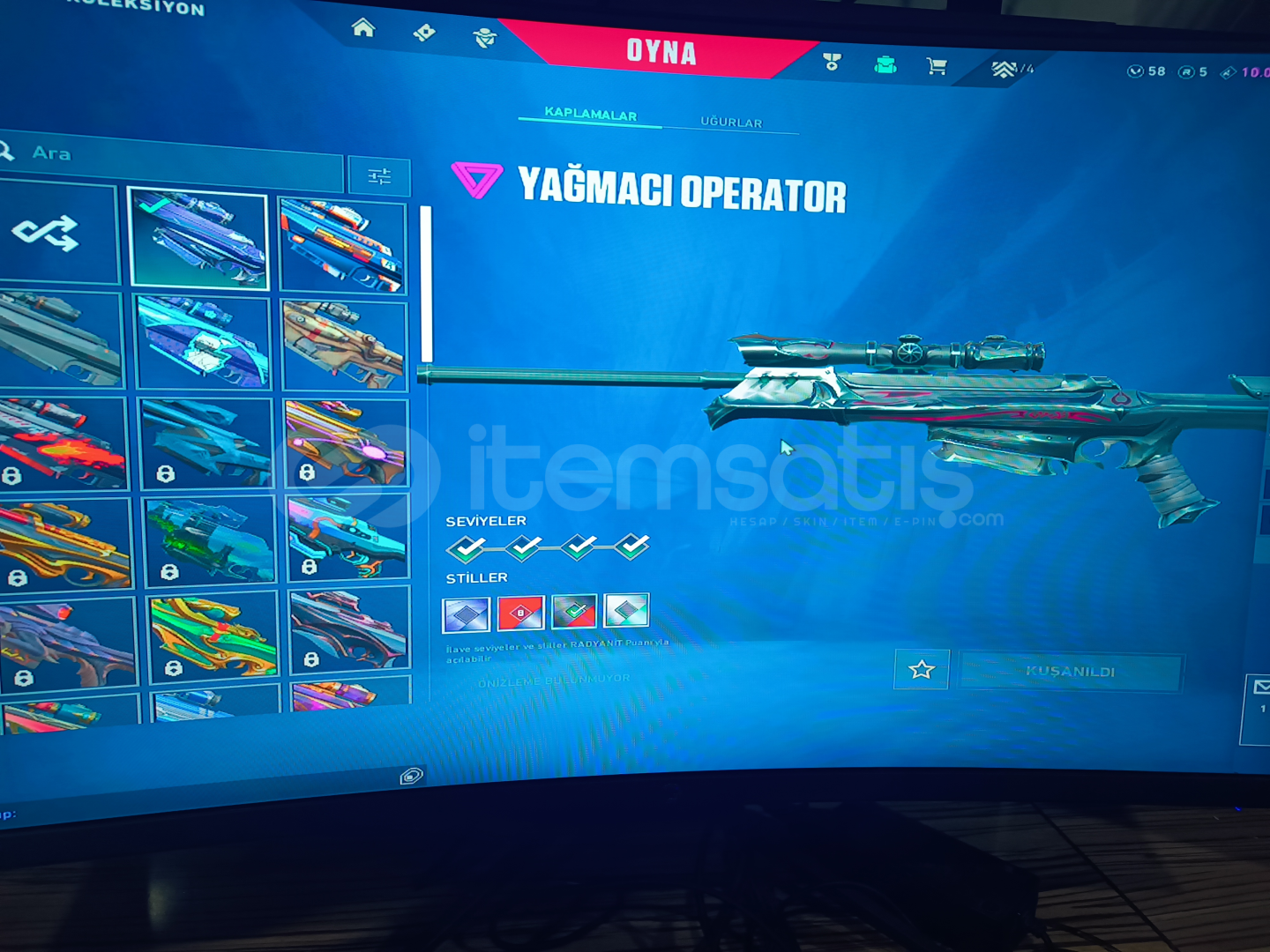 Guzel skinli hesapİçindekiler:Asil clasicEvori ghostYağmacı sherif seri tetik sherifProtokol spectreZifiri phantom protokol phantom radiant phantom spectrum phantoMKaos vandal ejderin buyruğu vandal kronomi vandal asil vandal yagmaci vandalYagmaci karambit rgx karambitYagmaci operatorHesap uygun güzel skinli