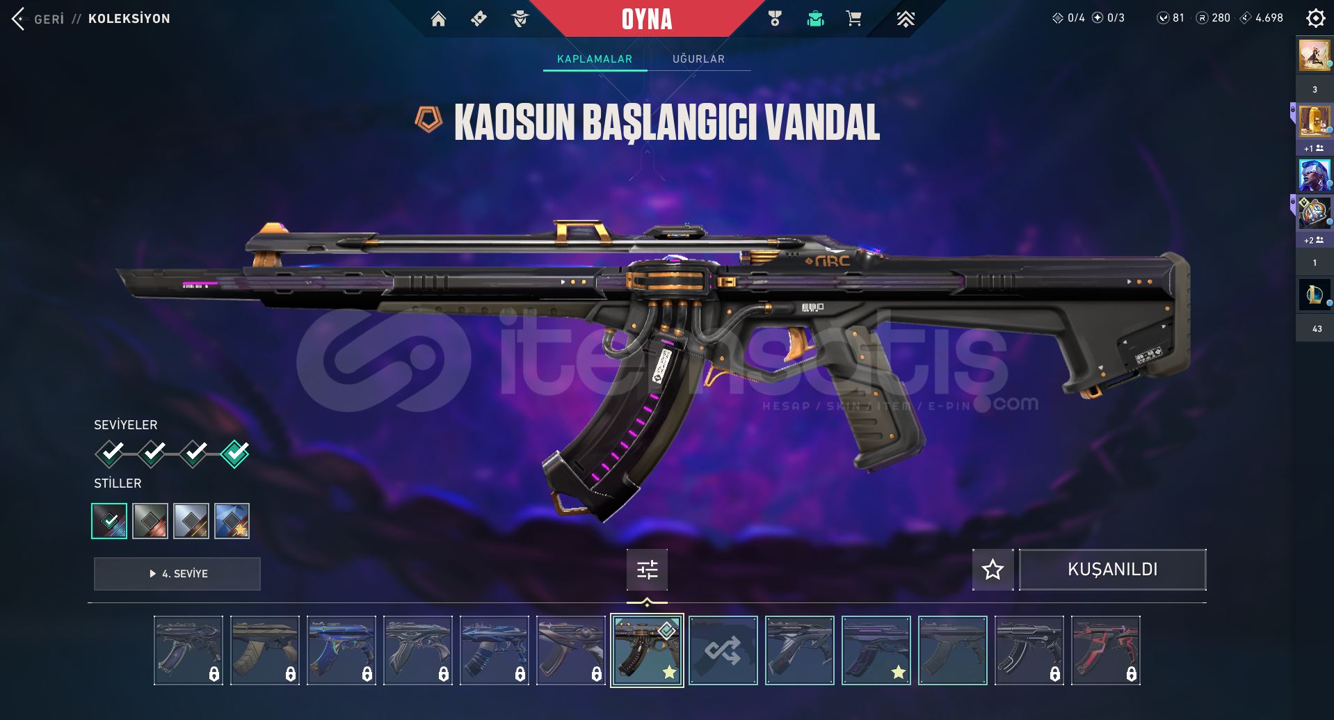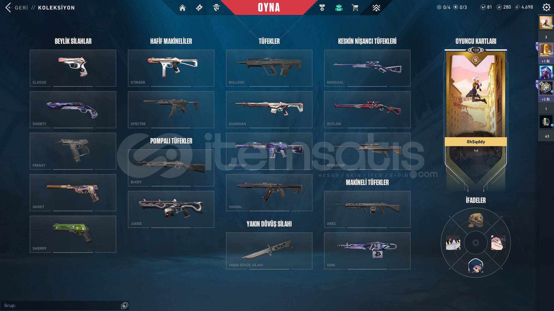 HESAP SEVİYESİ: 120RANK: GOLD 2 (ALTIN)KİNGDOM KREDİSİ: 4698RADYANİT: 280VP: 81CLASSILERIŞIKKIRAN CLASSICATLAS // KMT CLASSICGALAKSİ MUHAFIZI CLASSICSHORTYLERKIVRAK BELA SHORTYGHOSTLARGÜN TUTULMASI GHOSTECELİN ISIRIĞI GHOSTSHERİFFLERKARTUŞ SHARIFFSOLAREX SHERİFFSTINGERLERIŞIKKIRAN STINGERJUDGELARECELİN ISIRIĞI JUDGEGURADIANLARIŞIKKIRAN GUARDIANVANDALLARKAOSUN BAŞLANGICI VANDALECELİN ISIRIĞI V...