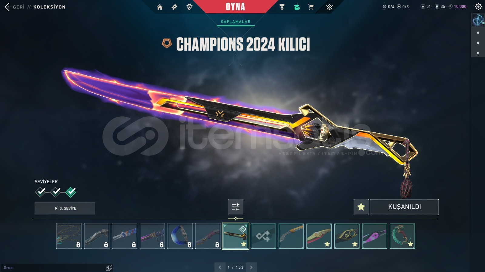 HESAP SEVİYESİ: 335RANK: DERECESİZKİNGDOM KREDİSİ: 10.000RADYANİT: 35VP: 51CLASSICLERKAR DİYARI CLASSICFİBER OPTİK CLASSICGAZAP CLASSICIŞIKKIRAN CLASSICPANORAMİK CLASSICPOPSTAR CLASSICTAKTİ-SERİ CLASSICYOONSEUL CLASSICSHORTYLERSEMADOKUYAN SHORTYDEVİNİM SHORTYENGİ MAVİLİK SHORTYHİMAYE SHORTYKIVRAK BELA SHORTYKIVRIM SHORTYFRENZYLERİĞNEKABUK FRENZYAHENK FRENZYHİHAYE FRENZYMEHTAP KURNAZ...