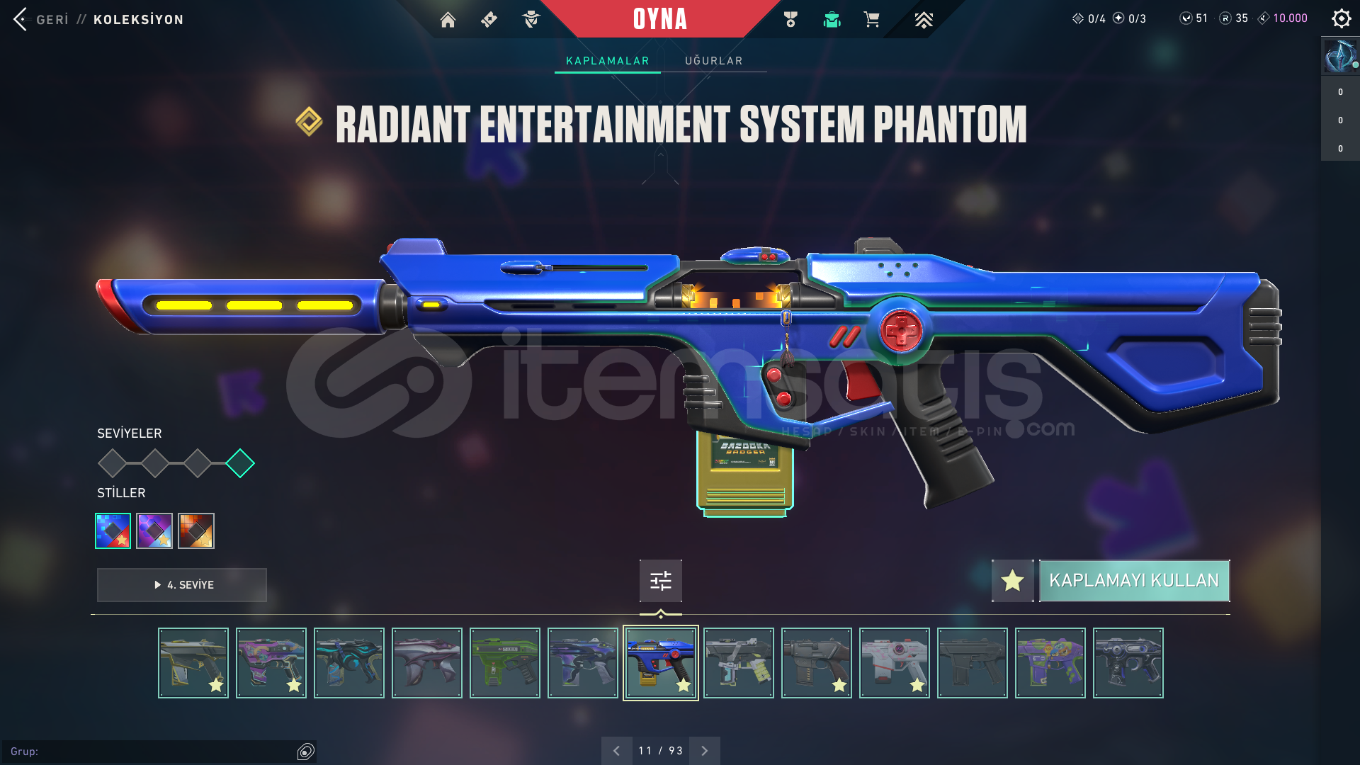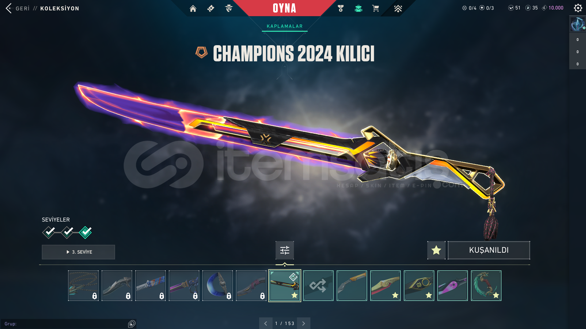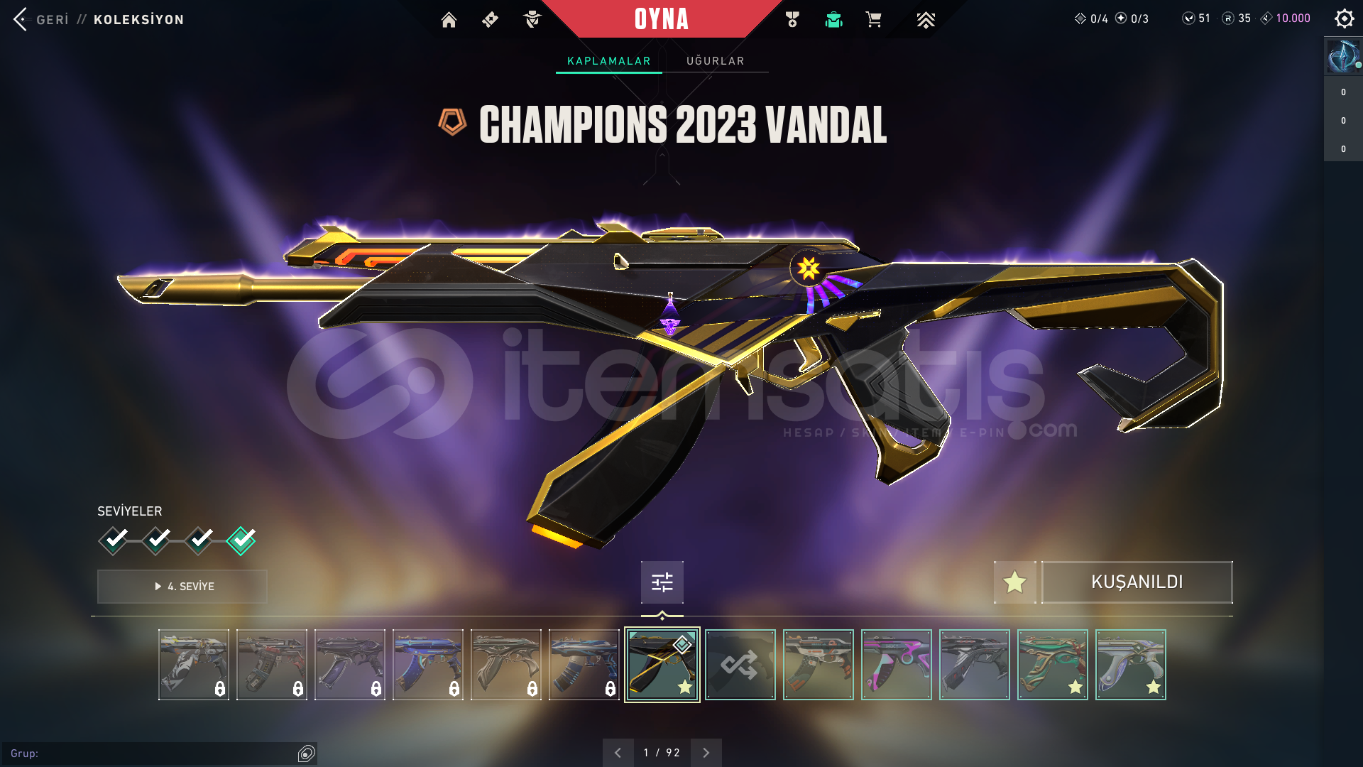 HESAP SEVİYESİ: 335RANK: DERECESİZ (UNRANKED)KİNGDOM KREDİSİ: 10.000RADYANİT: 35VP: 51CLASSICLERKAR DİYARI CLASSICFİBER OPTİK CLASSICGAZAP CLASSICIŞIKKIRAN CLASSICPANORAMİK CLASSICPOPSTAR CLASSICTAKTİ-SERİ CLASSICYOONSEUL CLASSICSHORTYLERSEMADOKUYAN SHORTYDEVİNİM SHORTYENGİ MAVİLİK SHORTYHİMAYE SHORTYKIVRAK BELA SHORTYKIVRIM SHORTYFRENZYLERİĞNEKABUK FRENZYAHENK FRENZYHİHAYE FRENZYME...