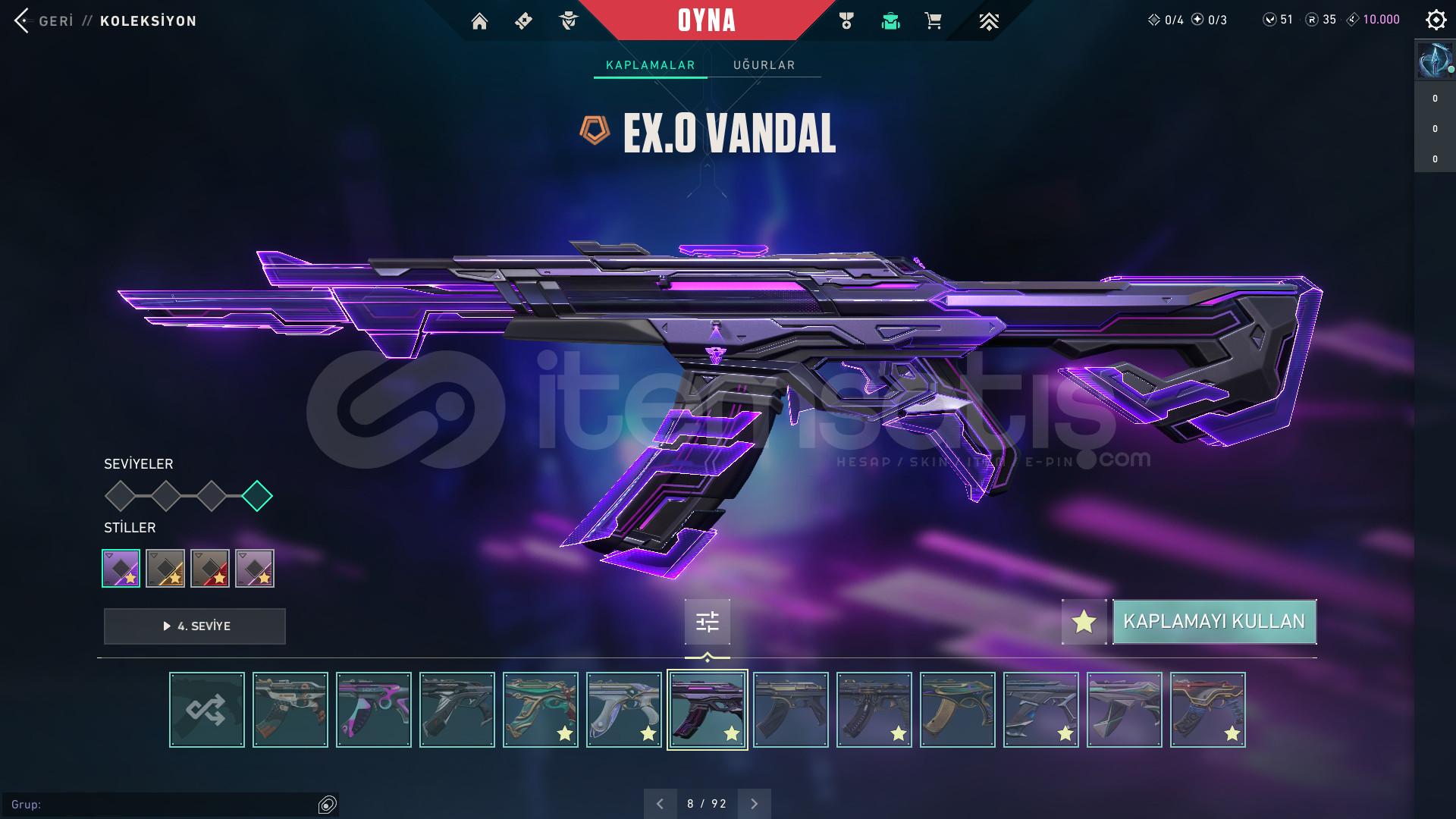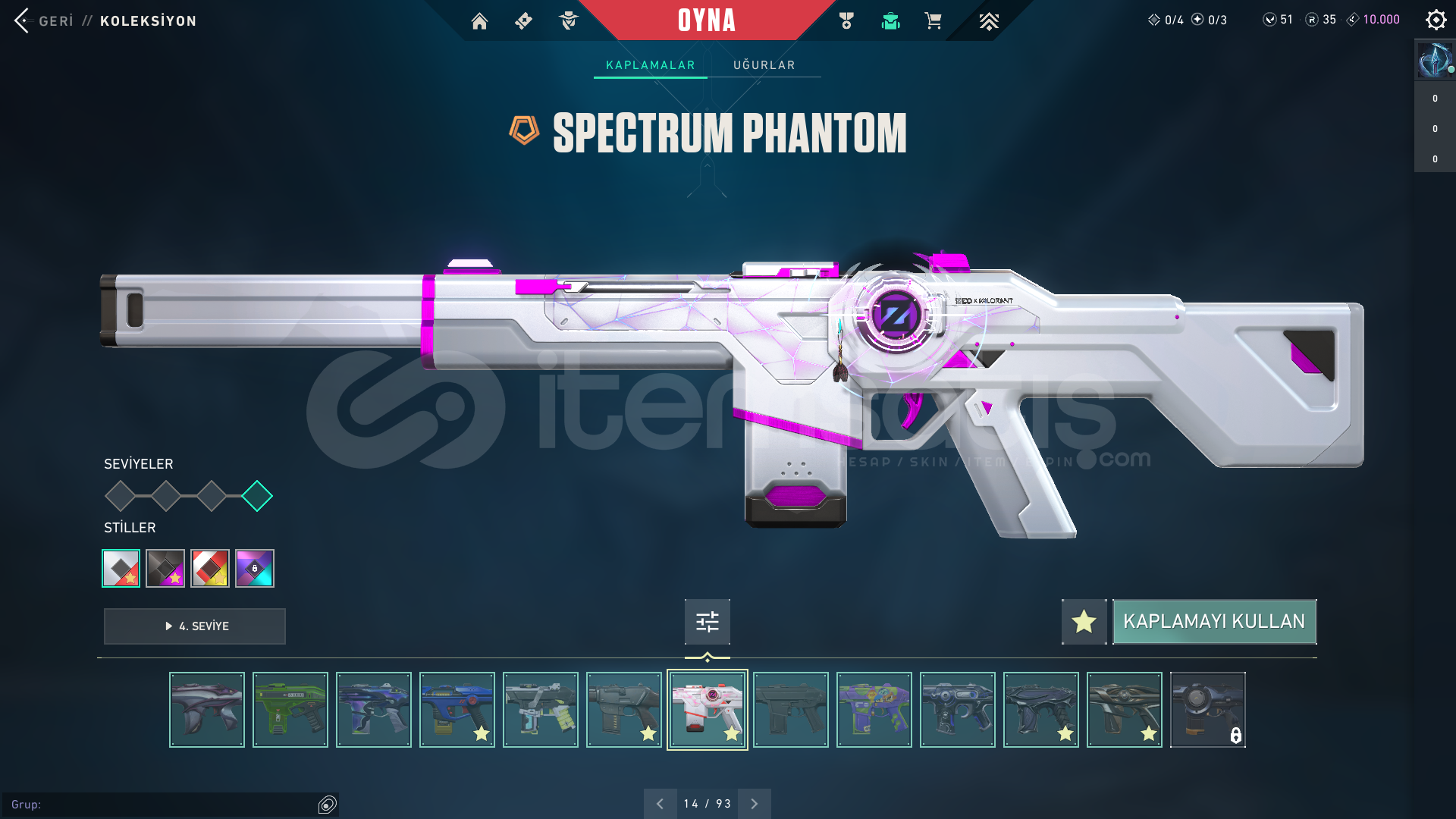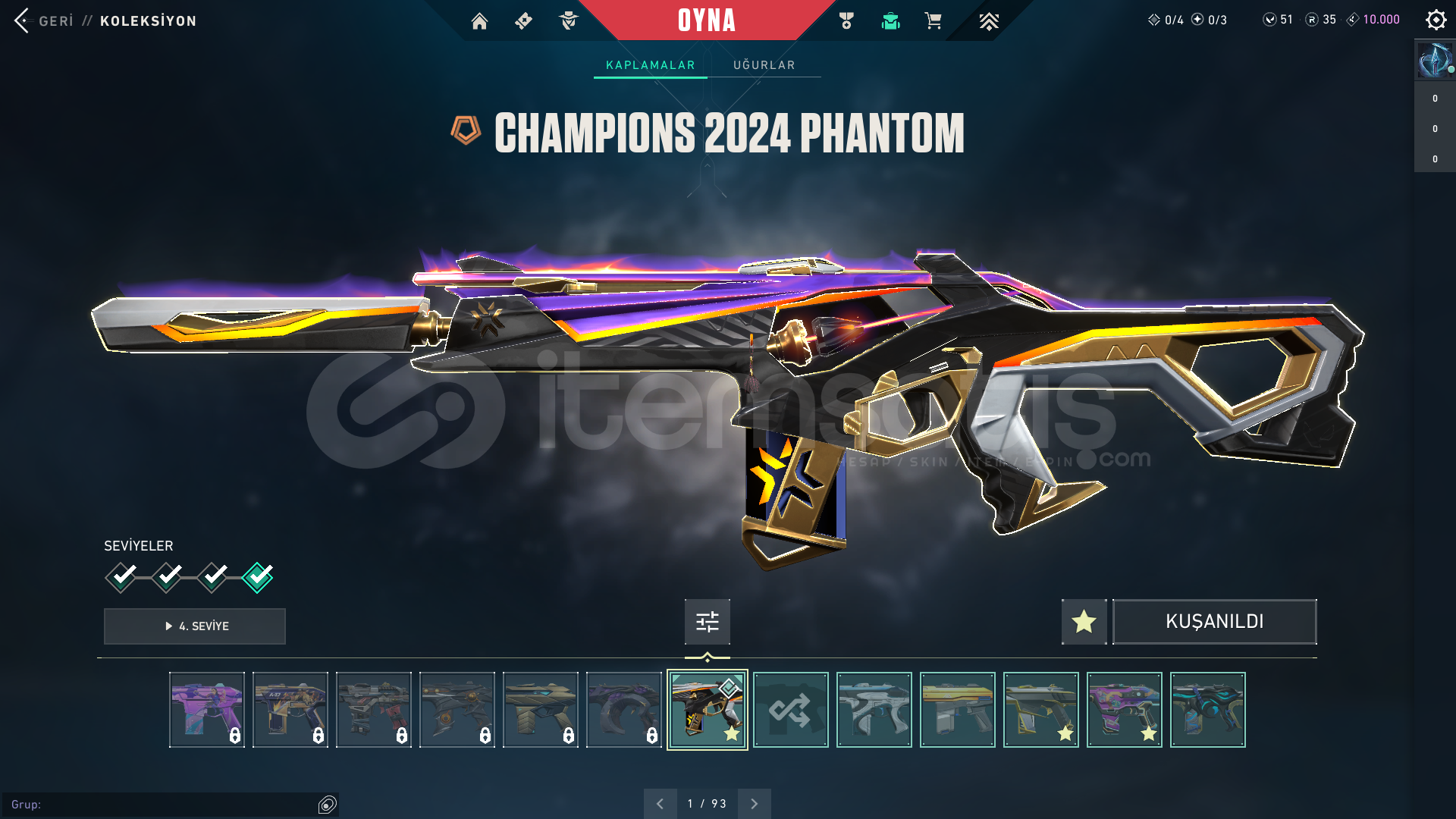 HESAP SEVİYESİ: 335RANK: DERECESİZ (UNRANKED)KİNGDOM KREDİSİ: 10.000RADYANİT: 35VP: 51CLASSICLERKAR DİYARI CLASSICFİBER OPTİK CLASSICGAZAP CLASSICIŞIKKIRAN CLASSICPANORAMİK CLASSICPOPSTAR CLASSICTAKTİ-SERİ CLASSICYOONSEUL CLASSICSHORTYLERSEMADOKUYAN SHORTYDEVİNİM SHORTYENGİ MAVİLİK SHORTYHİMAYE SHORTYKIVRAK BELA SHORTYKIVRIM SHORTYFRENZYLERİĞNEKABUK FRENZYAHENK FRENZYHİHAYE FRENZYME...