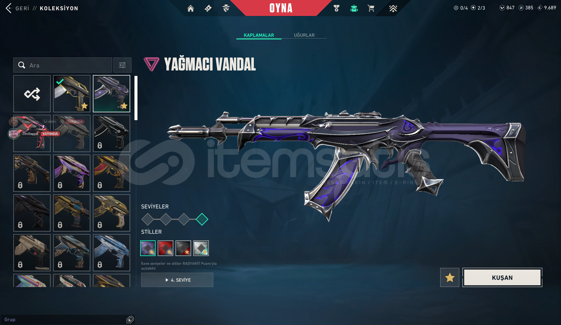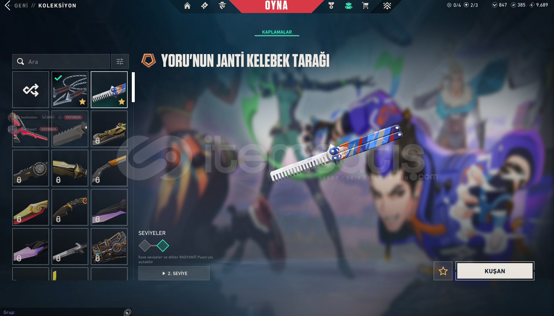 Hesabın İçerikleri : 800 VP EKSTRAAA 1 BATTLEPASS YAĞMACI VANDAL ASİL VANDAL KURONAMİ NO YAİBA BIÇAK YORUNUN JANTİ KELEBEĞİ MEVCUTTUR Hesabın Peak Rankı Diamond 1 Güncel Rankı Gold 1 dir %100 Güvence İle Alıcısına Hayırlı Olsun