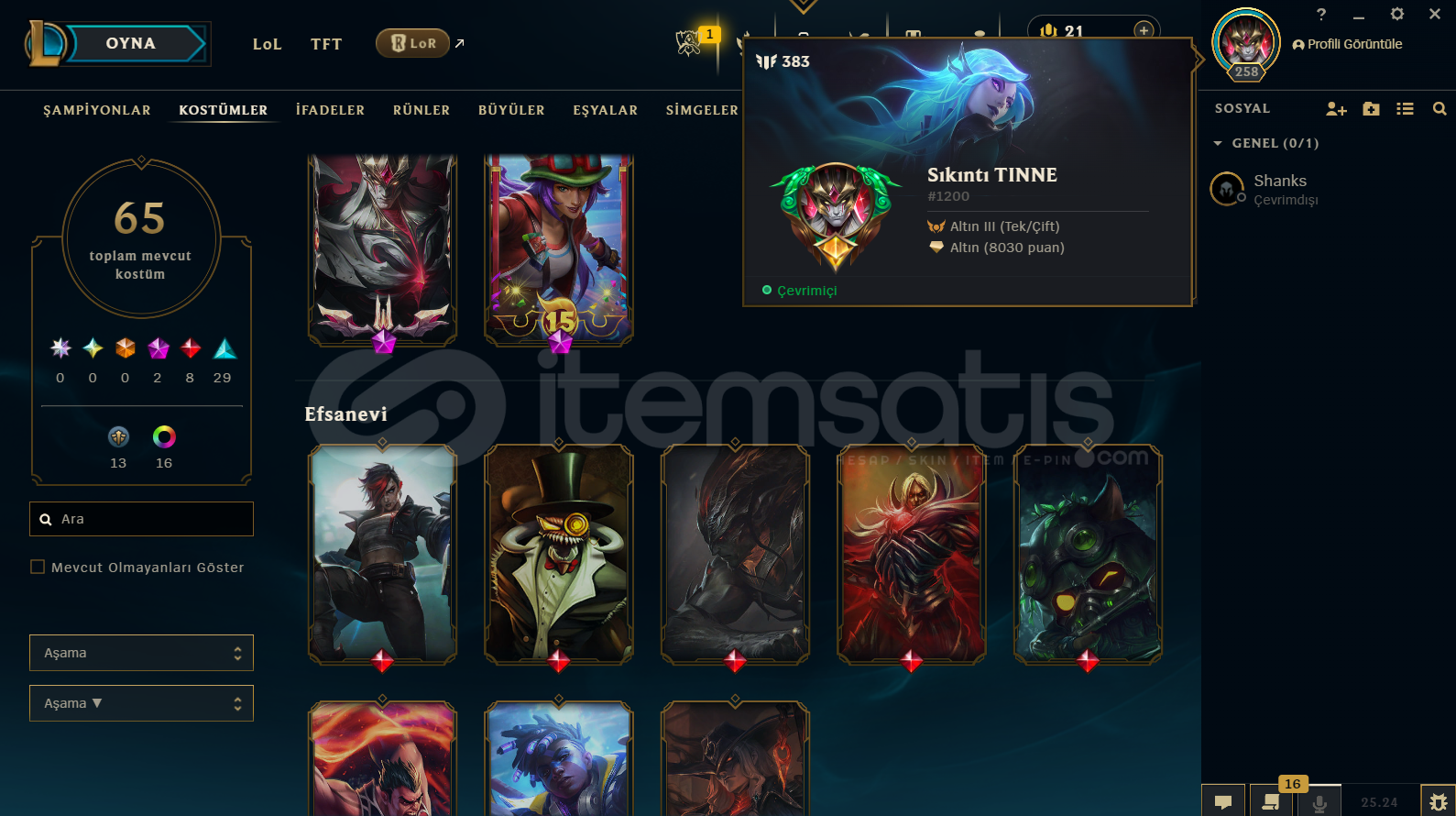 258 Seviye Lol Hesabı