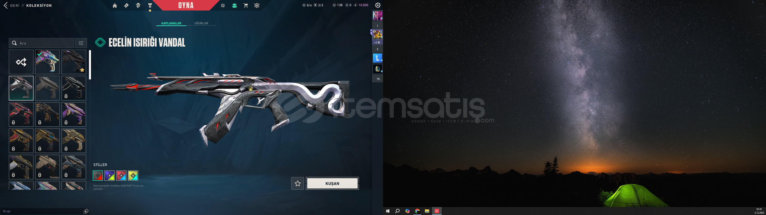 TRAFIK CEZASI YEDIM O PARAYA SATIYORUM FOTOĞRAFLAR SADECE PARA EDEN SKINLER ONLAR DISINDA SKINLERDE VARHESAP IMMO GORMUSTUR SUAN ELMAS 1 -ŞİMŞEK, AFET PHANTOM-DELIPOP,KAOS VANDAL-ASIL KARAMBIT,OZEL HAREKET KELEBEK,BP BICAK-ÇİÇEK SHERİFFVE BİRSÜRÜ SKİN VAR