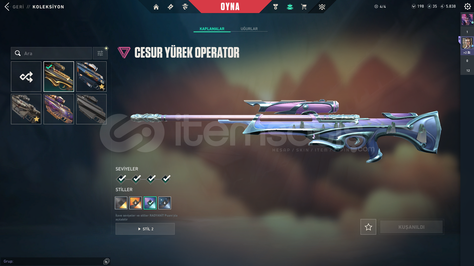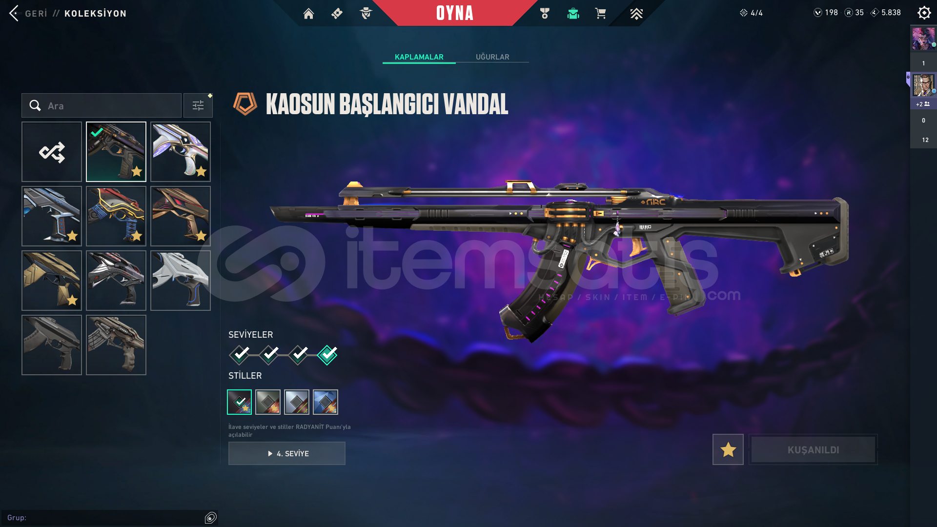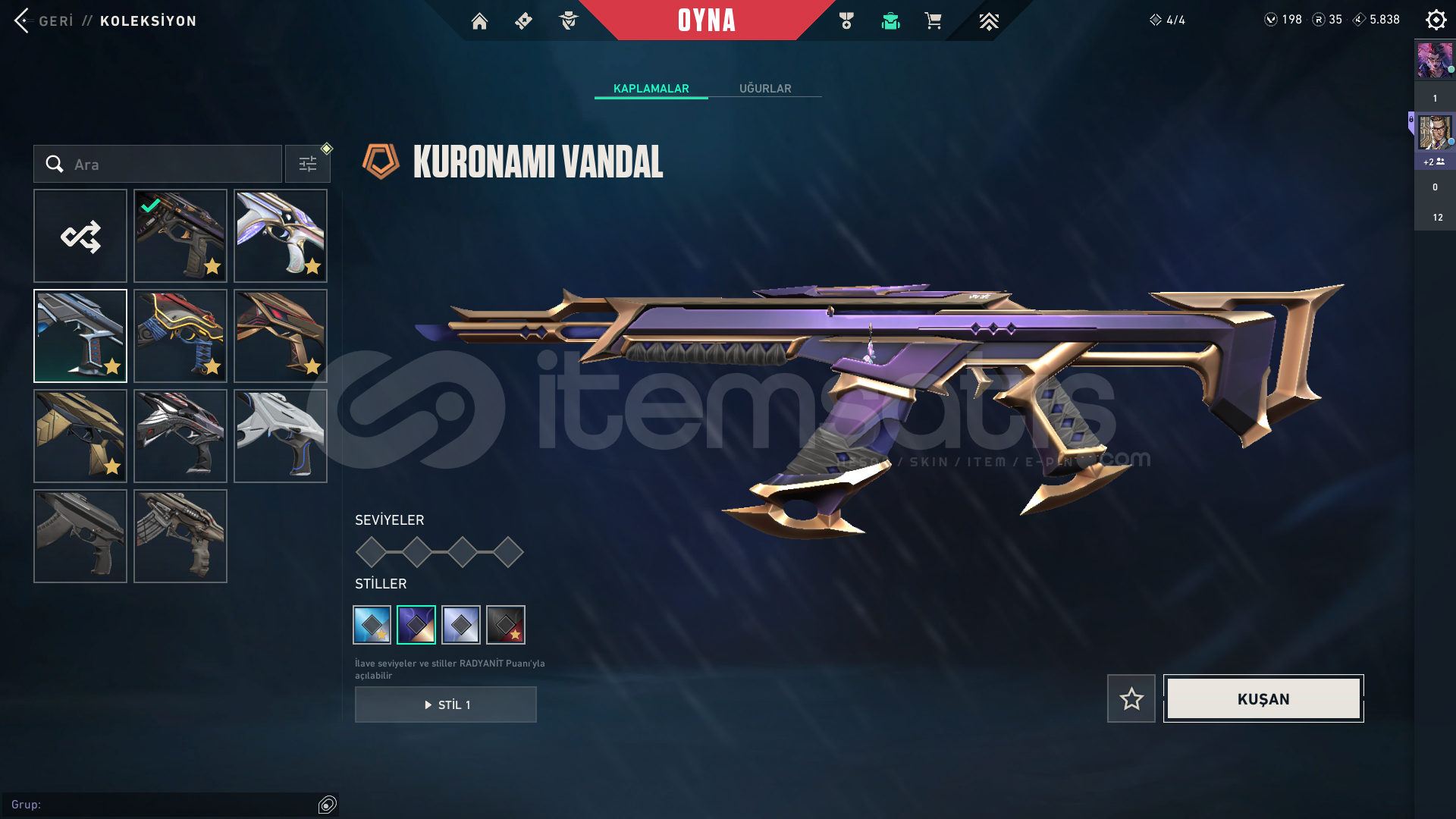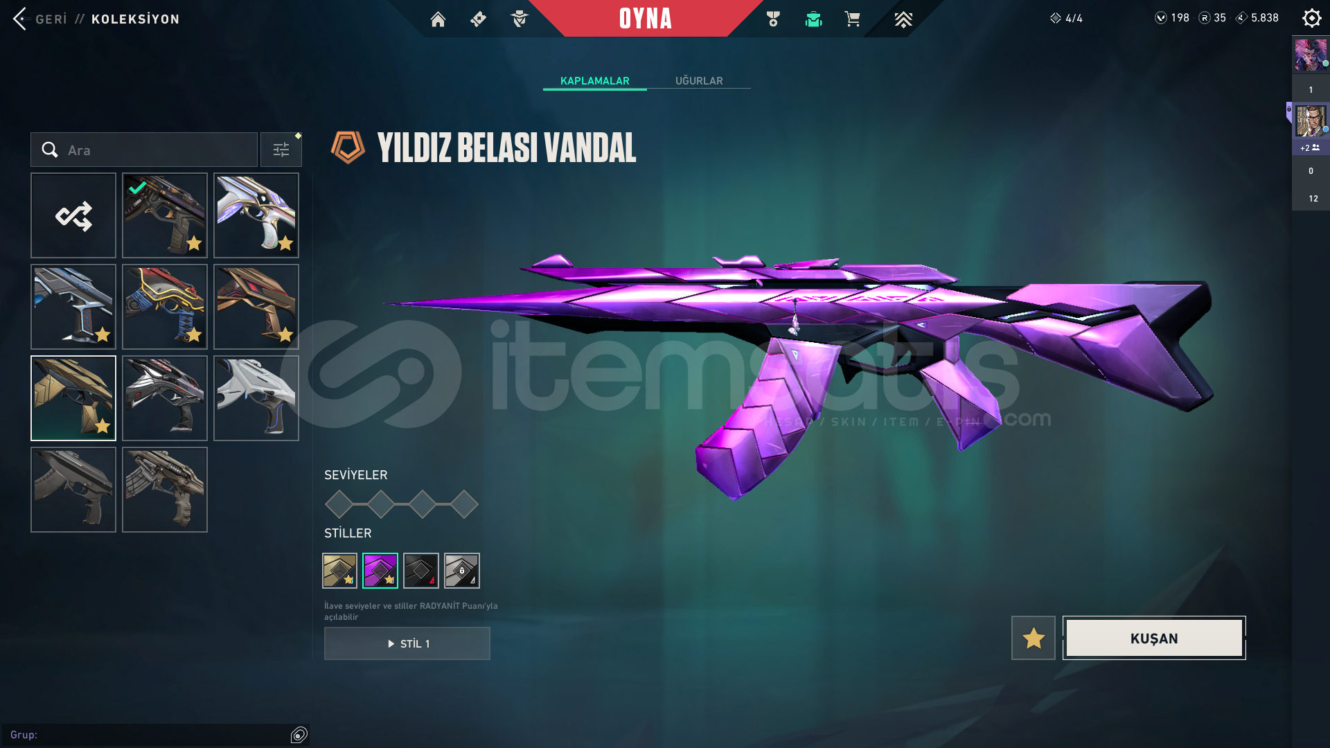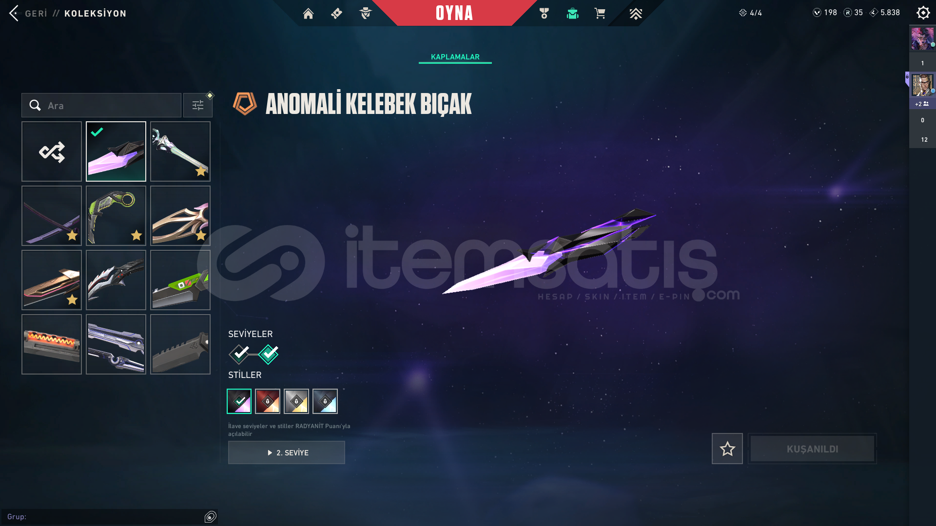 Rankı : Bronz 2*CLASSİCLER*-DELİPOP-NEPTÜN*GHOST*-ULU PENÇE*ŞERİF*-SÜRAT CANAVARI*SPECTRE*-NEPTÜN-EXO*PHANTOM*-ASİL 2.0-İYON-RADYANT KRİZİ***STİNGER***-NANO GÜÇ***VANDAL***-YILDIZ BELASI-KAOS-İYON-EXO -ONİ-KURONAMİ-ULU PENÇE-EVORİ****BIÇAK****-EXO KILIÇ-EVORİ BÜYÜLÜ ASASI-RGX 11Z PRO KARAMBİT-ULU PENÇE-ANOMALİ KELEBEK-SIR Ç&...