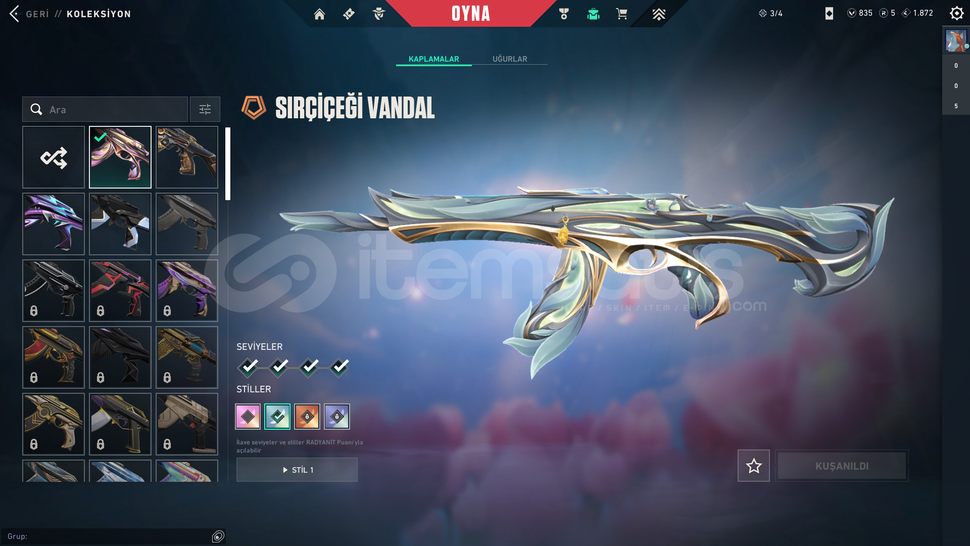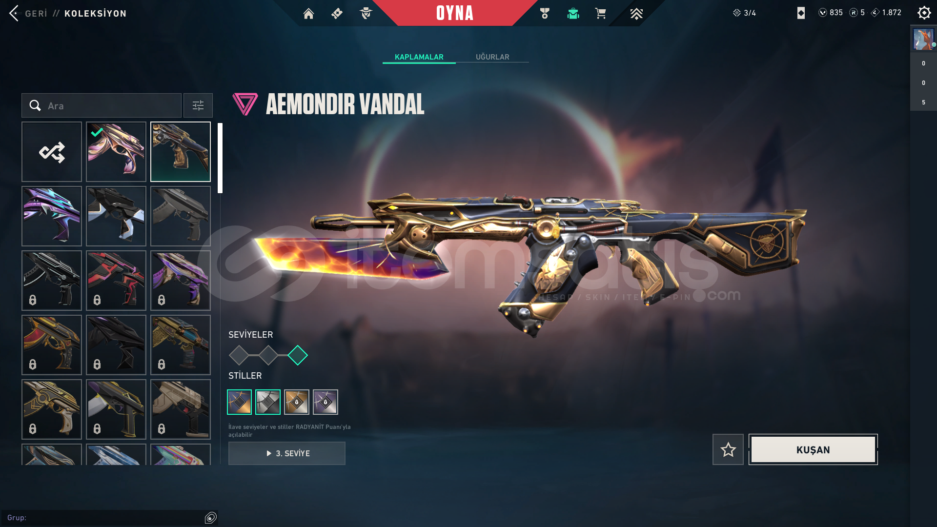 Kaos Setone tap ora bıçak ve vandal sırçiçeği vandal aemondır vandal1 adet battlepass vardır alıcısına hayırlı olsun güle güle kullasın.. :)