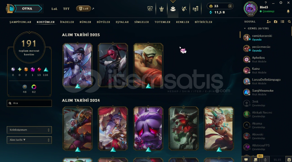 Uzun süredir LoL ve Valorant oynamadığım için hesabı satmaya karar verdimOyun şu anda kendi bilgisayarımda yüklü olmadığı için ekran görüntülerini arkadaşımın bilgisayarından aldımHesapta herhangi bir ban ceza veya sorun bulunmuyor