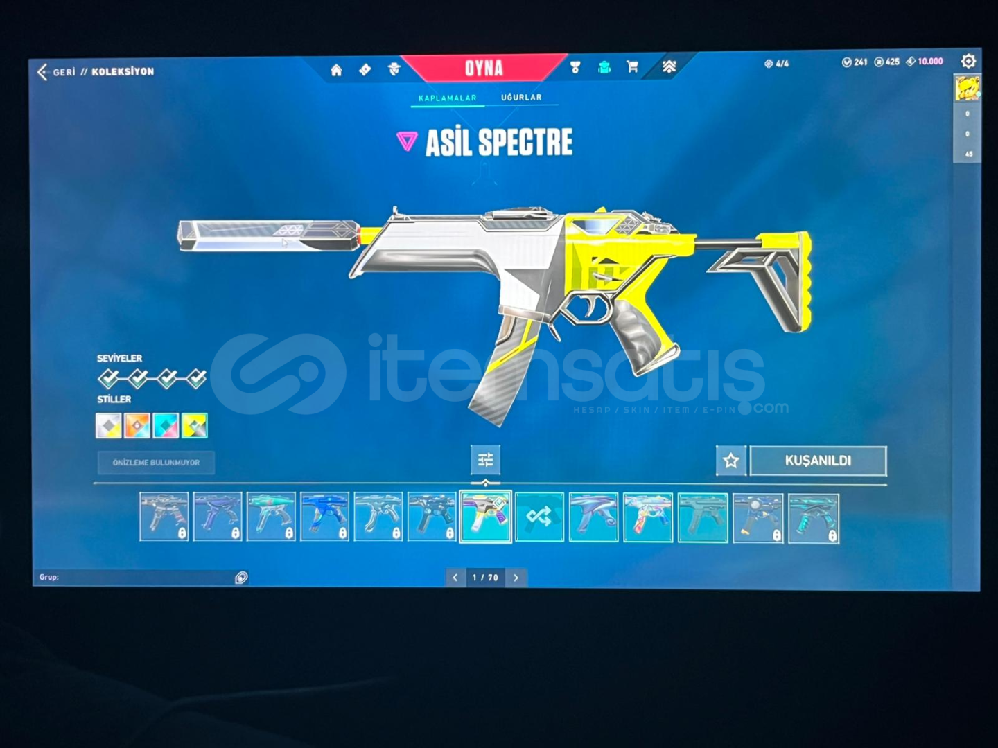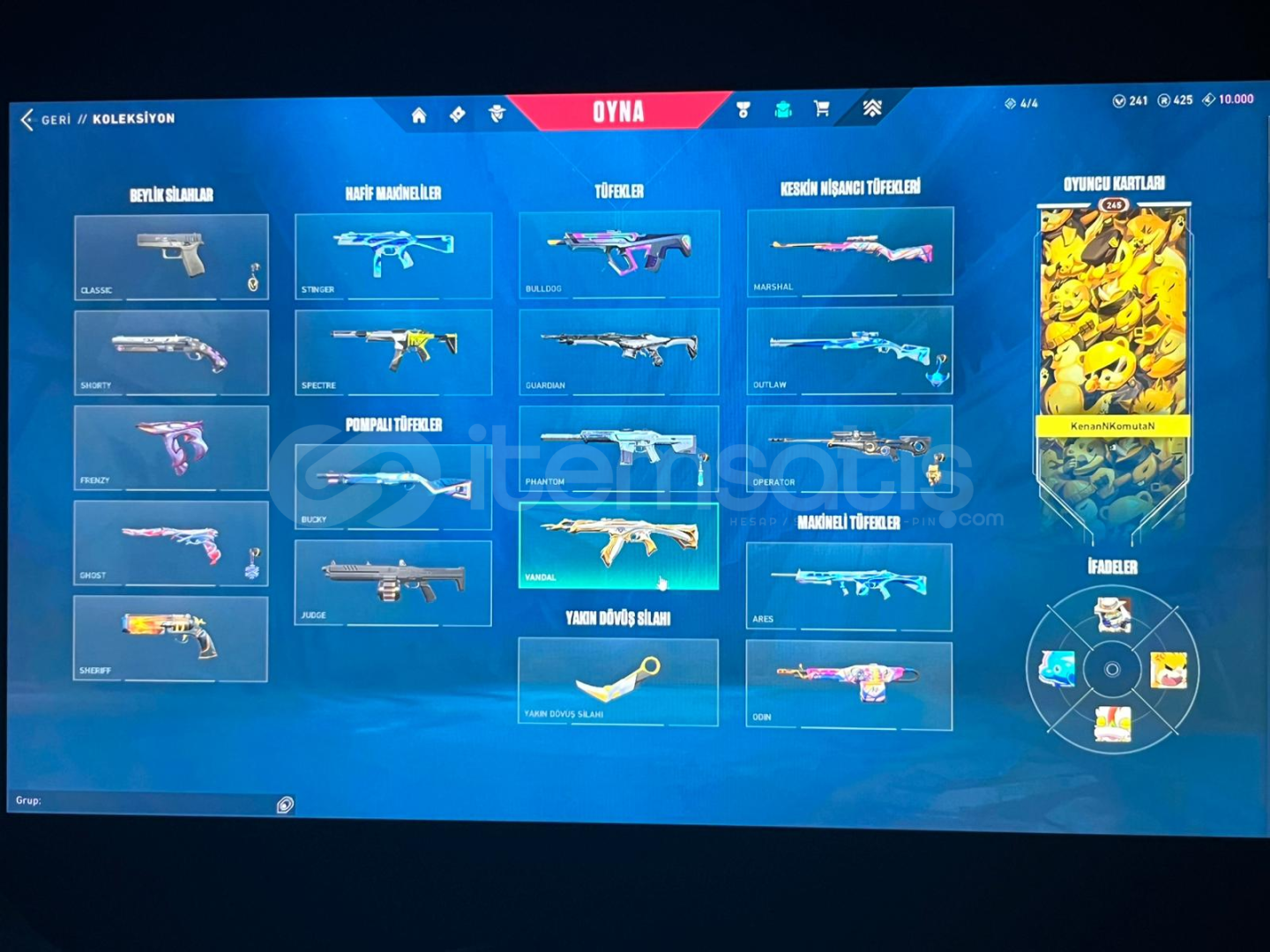 Merhabalar,Hesabımın içinde yaklaşık 30.000 VP yatırılmıştır. 245 Seviyedir Platin 2 dir Premıer Turnuvasına katımadım ilk maili bana ait hesabımın içindeki skinler-Karaborsa classic-Gaia Ghost-Seri tetik shherif-Asil spectre-yağmacı guardian-radyanit krizi 001 Phantom-asil vandal,gaia vandal,yağmacı vandal,yitik vandal,ejderin buyruğu vandal-köken operatör-asil karambit,&o...