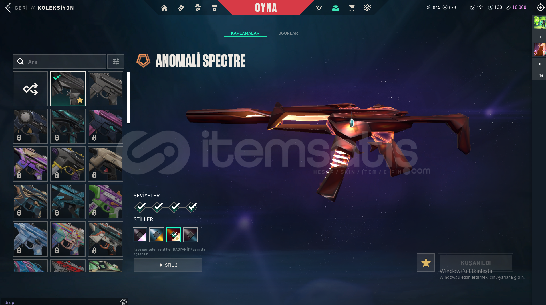 PEEK RANKI PLAT 1GÜNCEL RANK ALTIN 1HESAPTA;KAOSUN BAŞLANGICI VANDALYAĞMACI VANDALEVORI RÜYAKANATLAR VANDAL YİTİK VANDALDELİPOP PHANTOMRADYANT KRİZİ 001 PHANTOMYILDIZ BELASI OPARATÖRANOMALİ SPECTREYAĞMACI SHERIFFFATİH GHOSTRGX Z11 PRO KELEBEK MEVCUTTUR.CİDDİ ALICISI OLMAYANLAR RAHATSIZ ETMESİN!!!