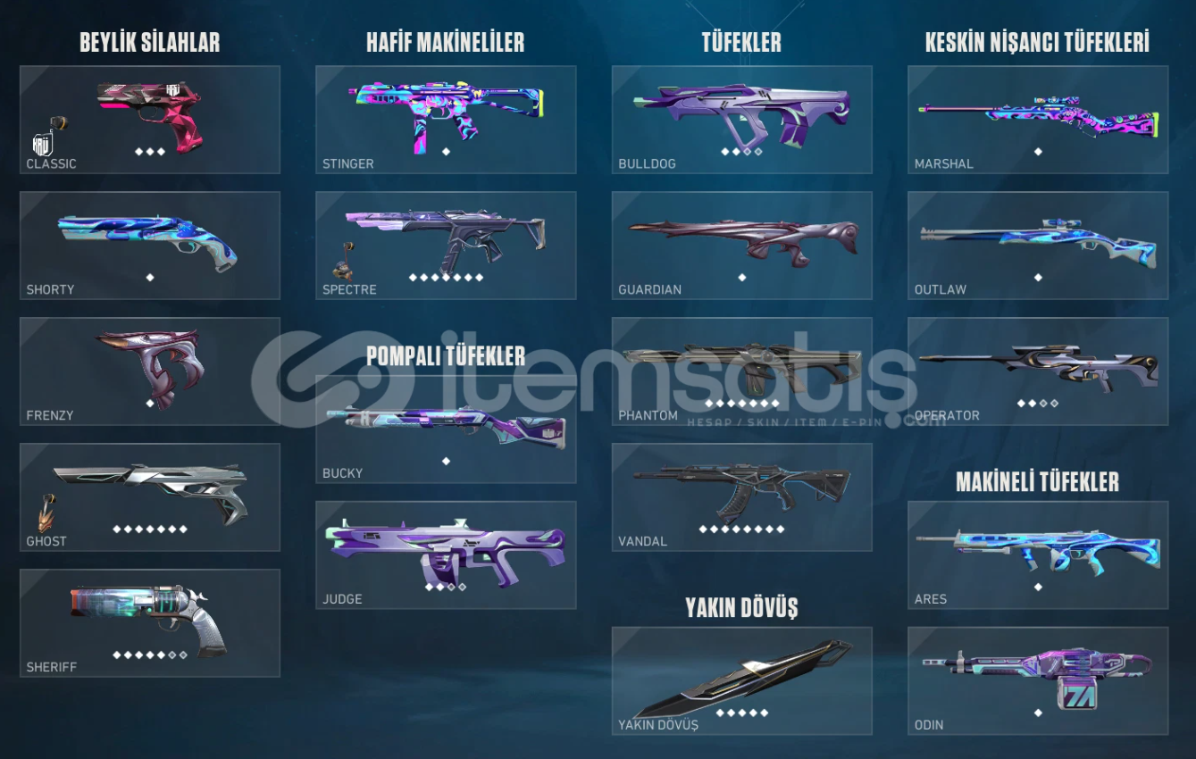 Hesap kendi şahsi hesabımdır herhangi bir sıkıntısı yoktur oyundan sıkıldığım için satıyorum.Ulupençe (Reaver) Seti:Vandal: 1.775 VPOperator: 1.775 VPGuardian: 1.775 VPSheriff: 1.775 VPYakın Dövüş Silahı (Bıçak): 3.550 VPRGX 11z Pro Vandal: 2.175 VPFelaketin Kalbi (Elderflame) Vandal: 2.475 VPKuronomi (ChronoVoid) Vandal: 2.175 VPNeptün (Neptune) Vandal: 1.775 VPZamanın &...