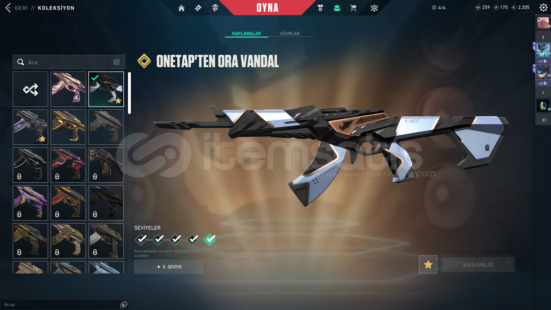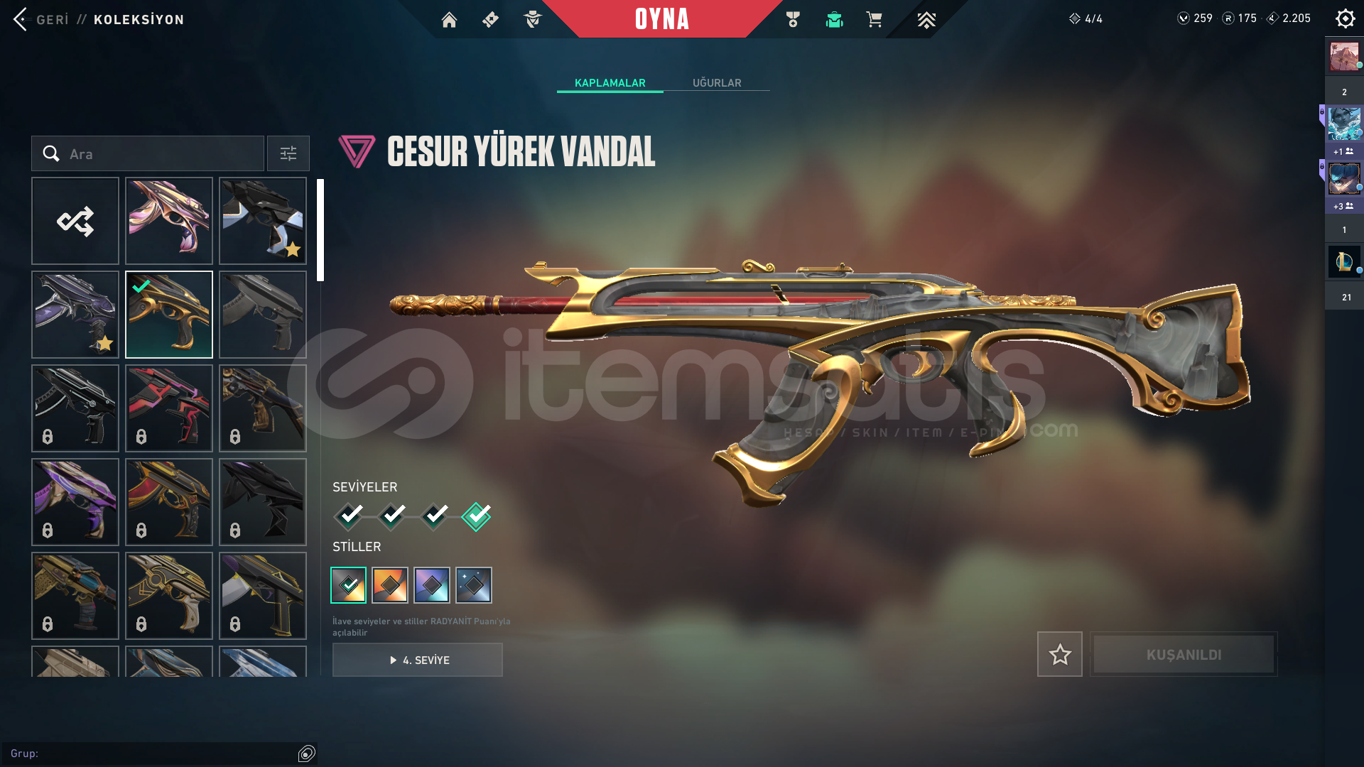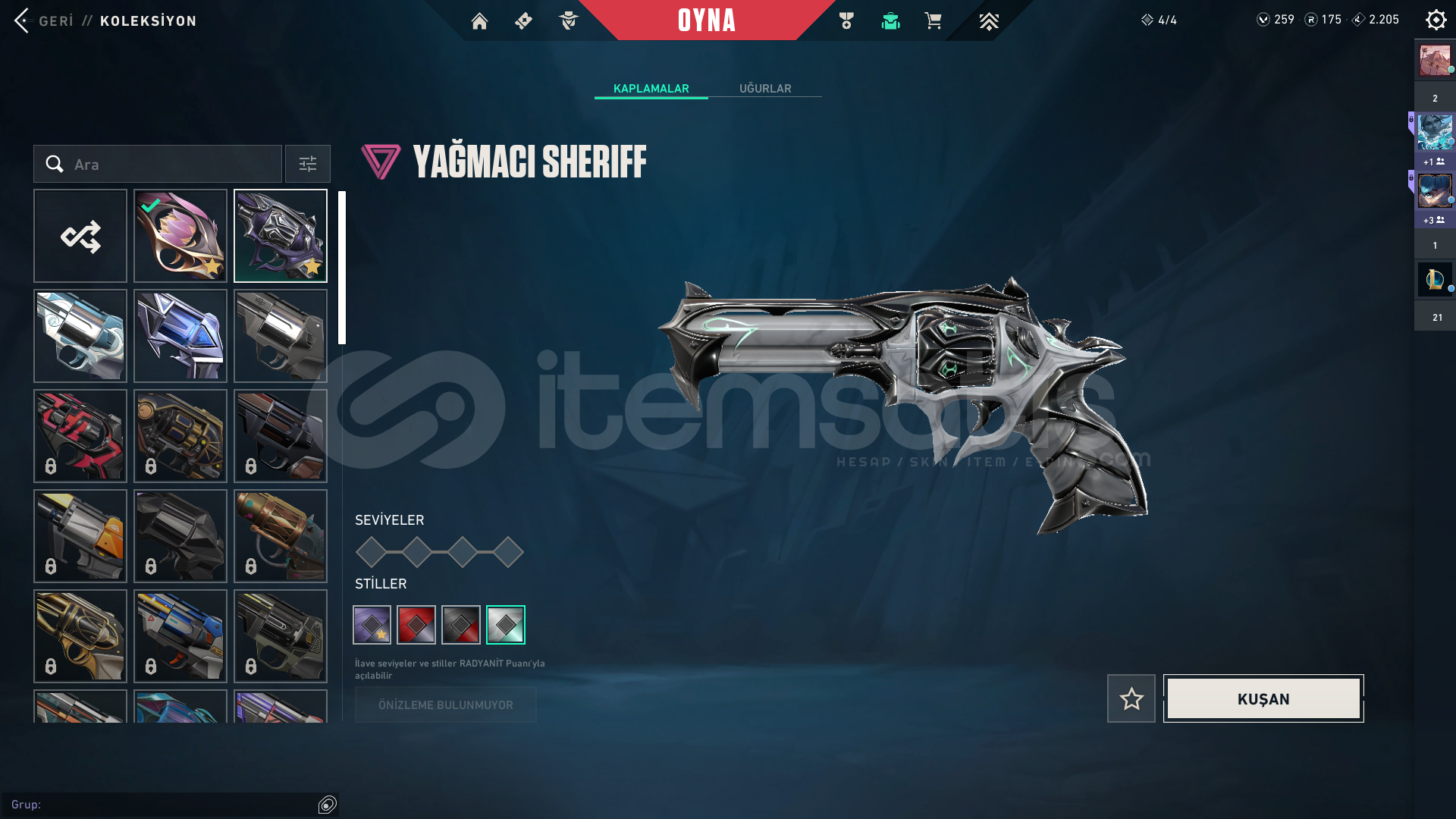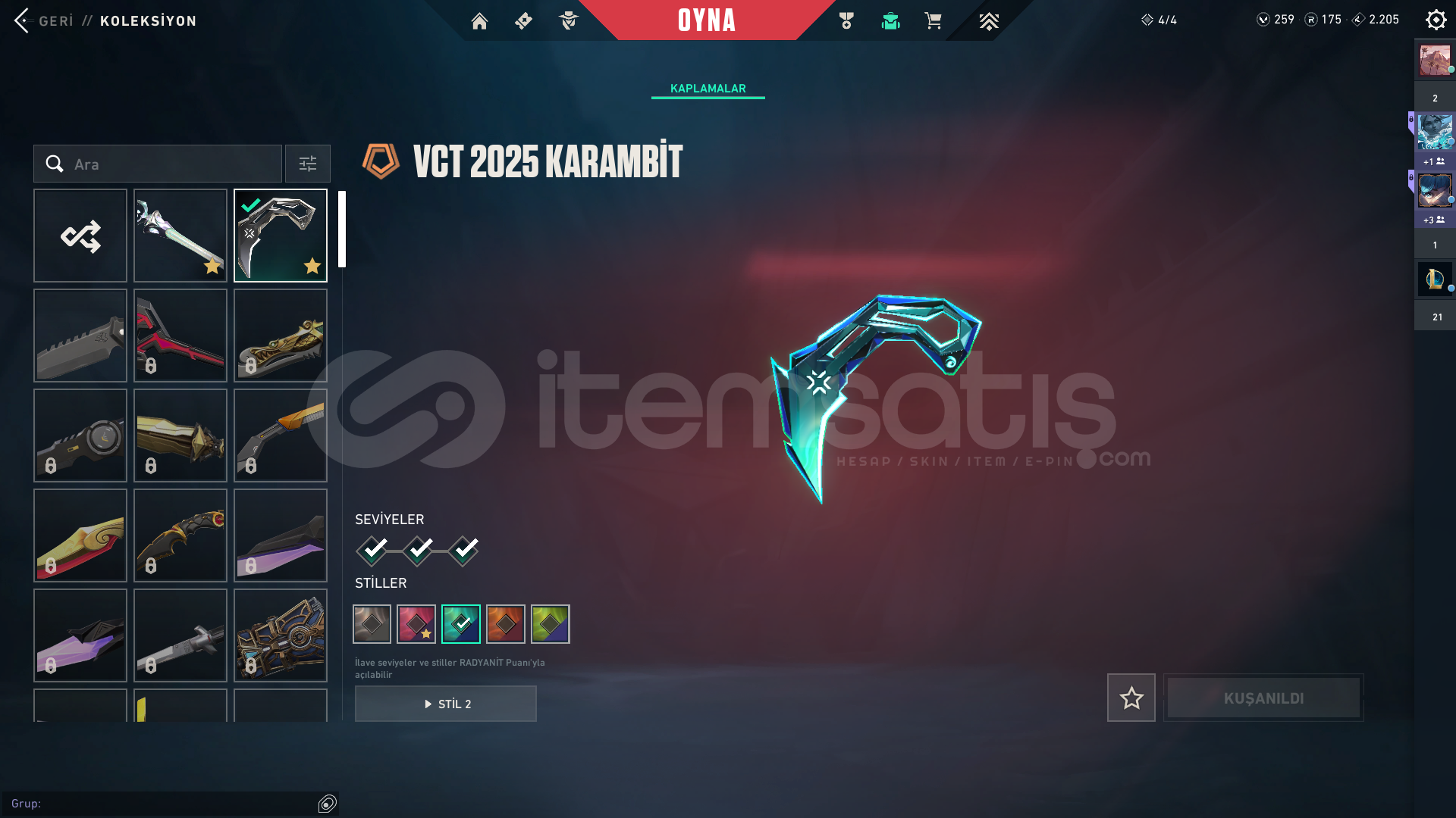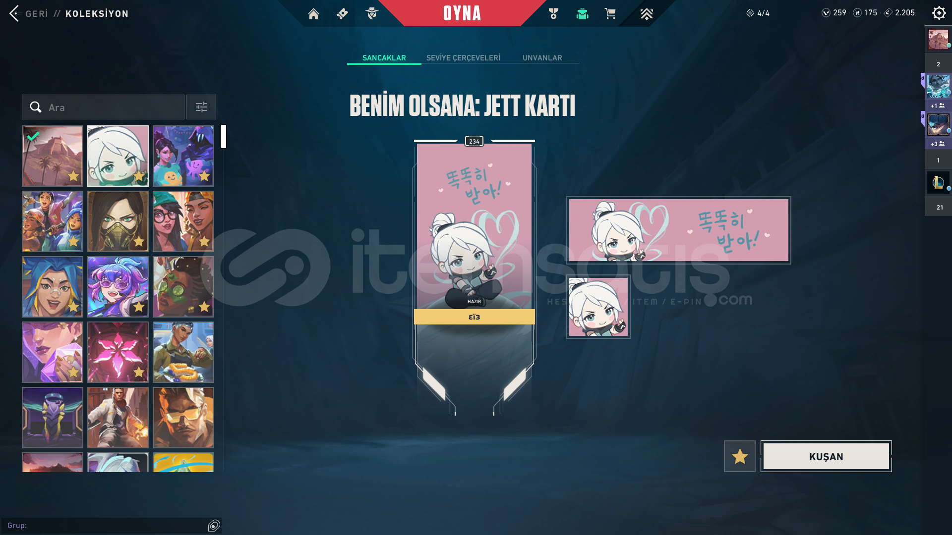 234 seviyelik bir hesap, Harbor hariç bütün karakterler açık bir çok ünvan bir çok kart mevcut. İçerisinde 2 Bıçak, 4 Vandal, 2 Sheriff, 1 Ghost bulunmakta. Hesaptan aldığım parayı ihtiyaç sahibine vereceğim, bu yüzden satıyorum. Fiyat konusunda anlaşırız.