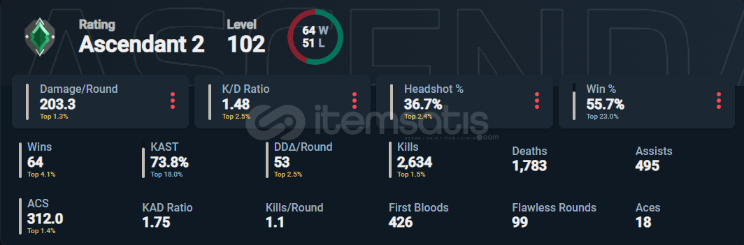 Tracker bağlantısını da bıraktım; HS oranı, KDA, MMR gibi detayları merak edenler nick açık olduğu için bakabilir. Alıcıya şimdiden hayırlı olsun. Fiyatta ufak bir pazarlık yapılabilir.