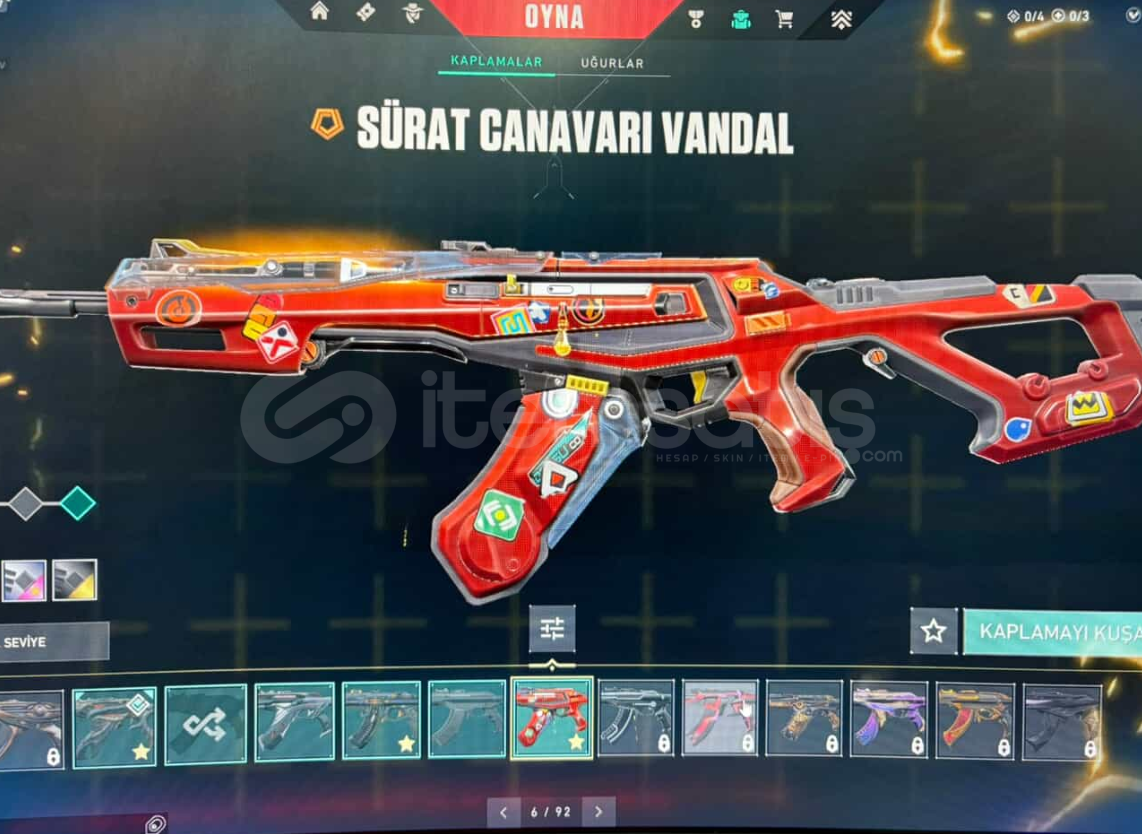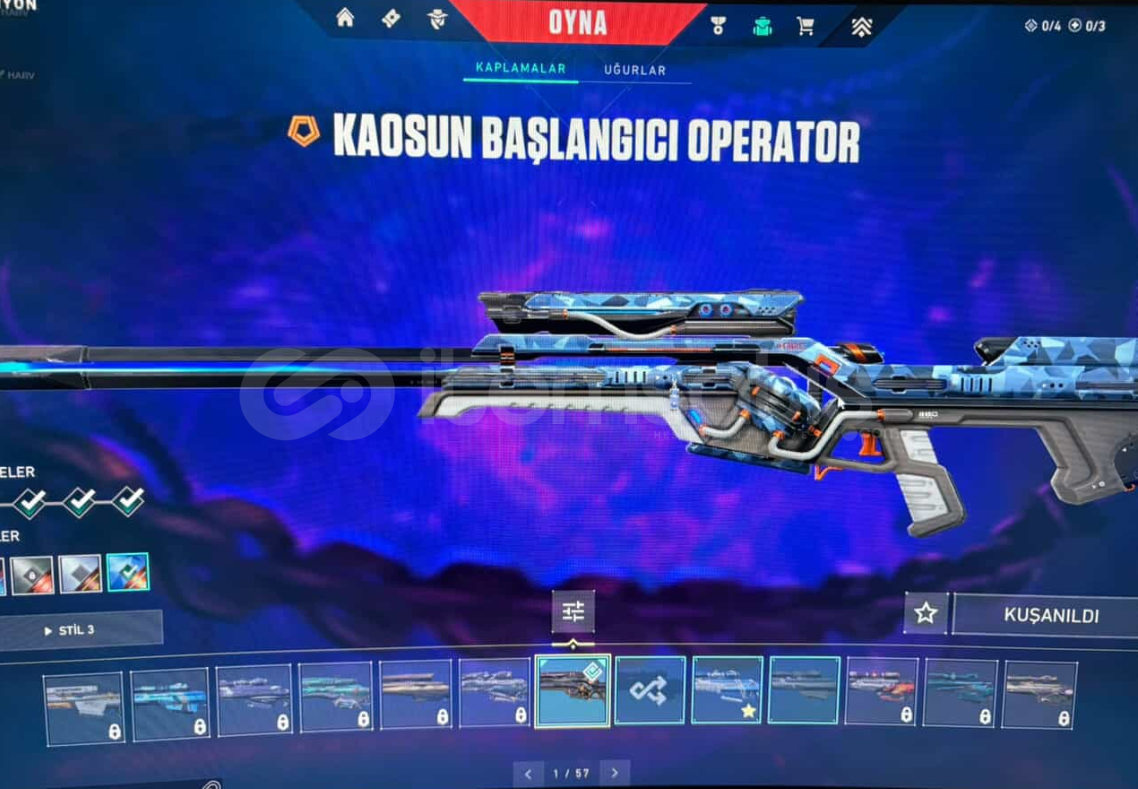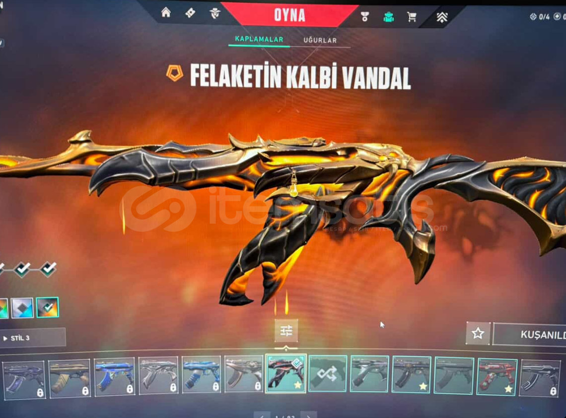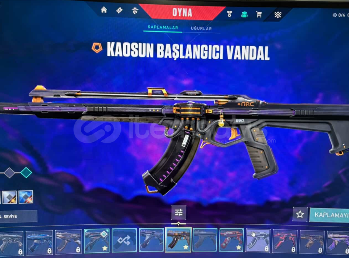 vandal da : kaos - felaketin kalbi ve sürat canavarı varphantom da : seri tetik varOperatör de : kaos varserifte de : protokol ve yağmacı varghostta da : ruh azabı vardırhesaba : 1 yada 2 battle pass bulunmakta 422 vp bulunuyor elosu plattırhesap lvl li 106TR sunucudurPAZARLIK VARDIR